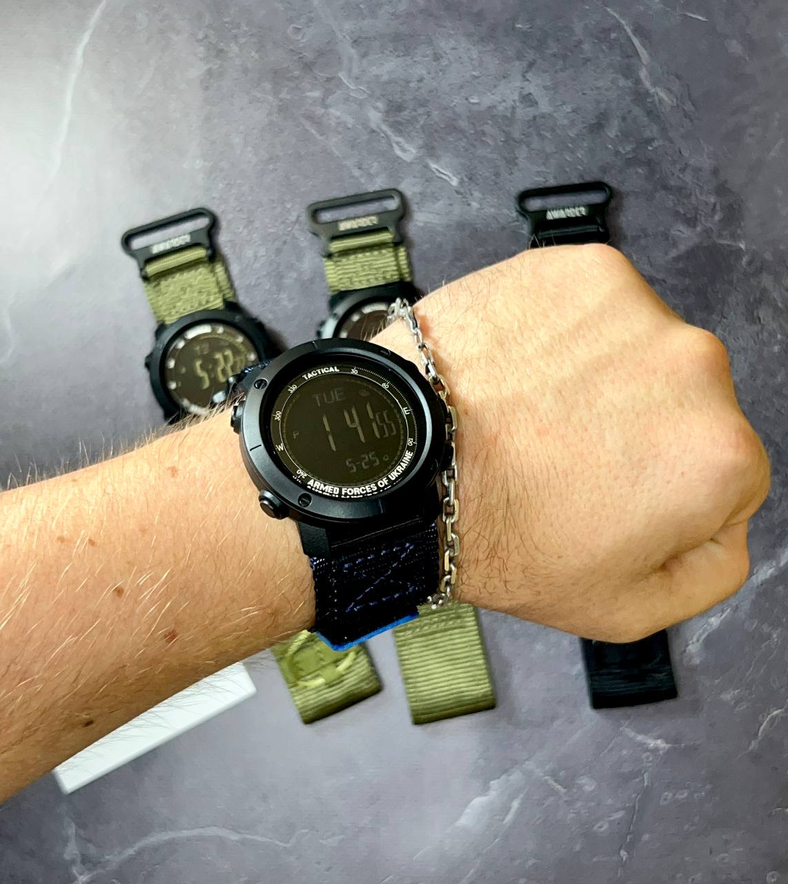 Это больше, чем просто часы: компас для ориентировки, барометр для предсказания погоды, альтиметр для контроля высоты и множество других полезных функций. И все это на крепком нейлоновом ремешке. В комплекте также стильная коробка и инструкция на украинском языке. Готов к любым испытаниям? Эти часы станут вашим надежным спутником!