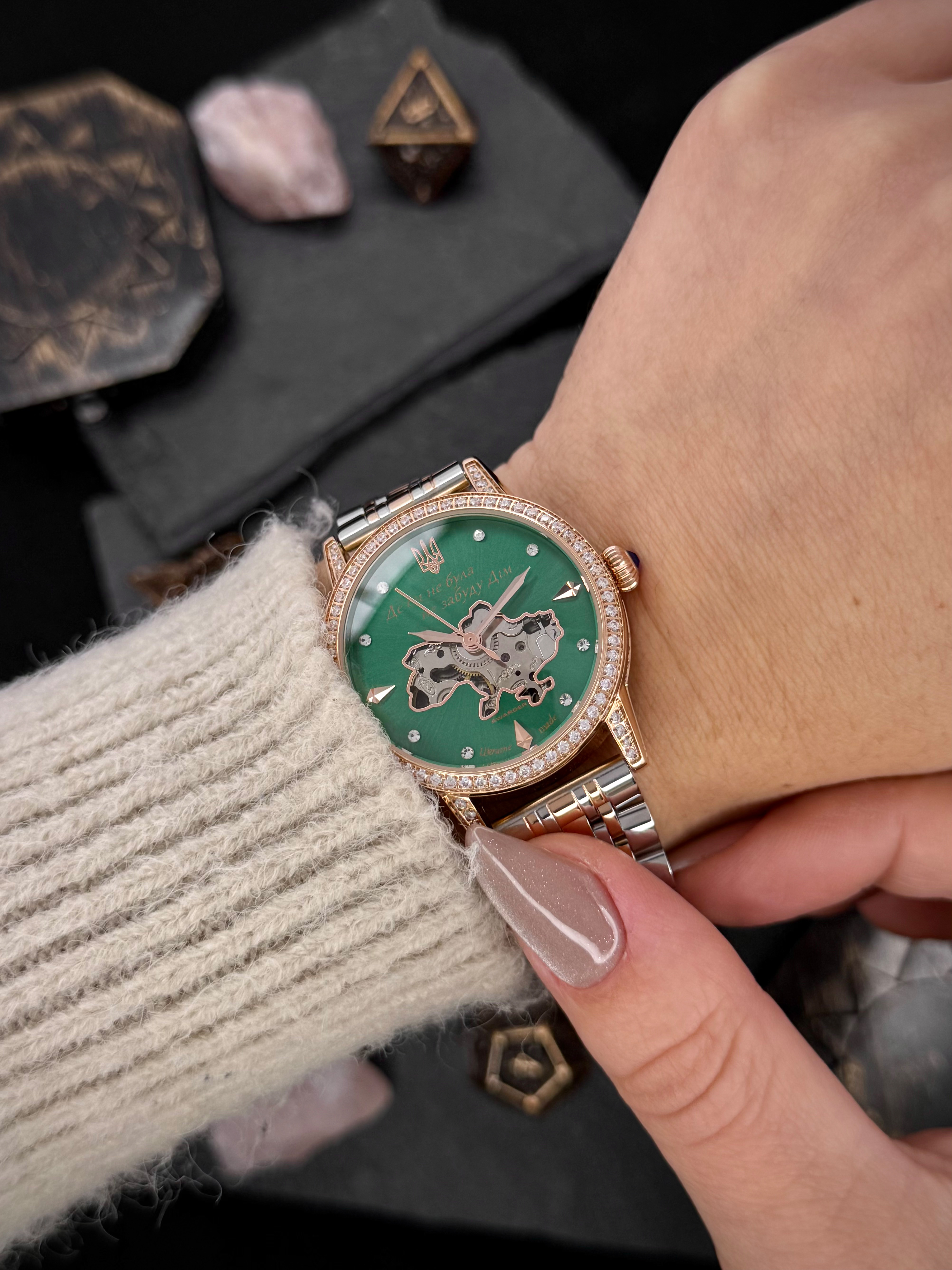 Часы Awarder 049 работают на основе надежного механизма с автоподзаводом, обеспечивая точность и длительный срок службы. Вы получаете 12 месяцев гарантии на этот стильный аксессуар, производимый в Украине.