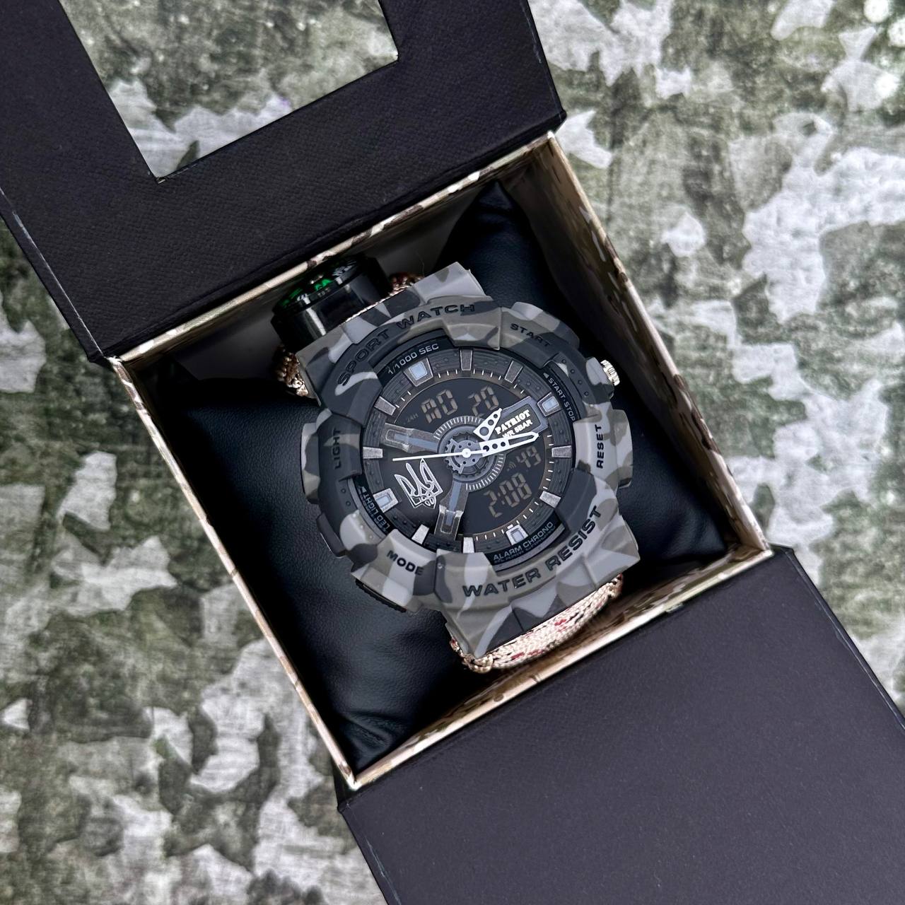 Теги: chasy naruchnye patriot 005 trezubec serebro seryy kamuflyazh parakordovyy remeshok desert camo korob, patriot, voennye chasy, patriot 005
