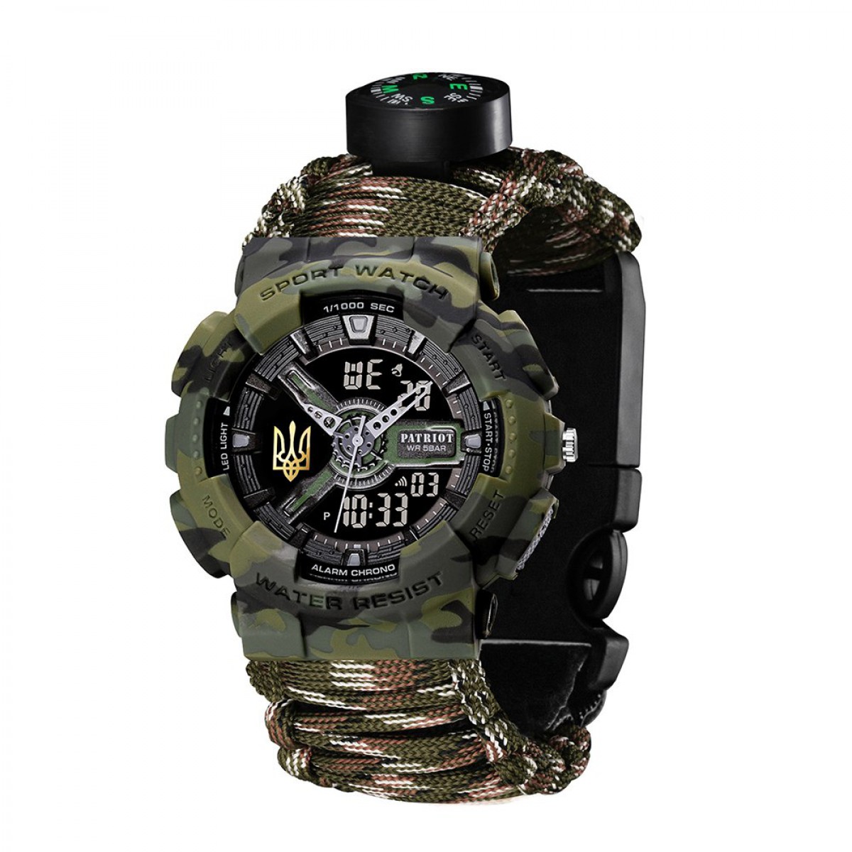 Часы наручные Patriot 005 Трезубец золото Camo Green Паракордовый ремешок Camo Green + Коробка.