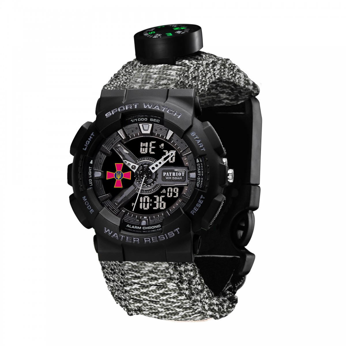 Описание Часы наручные Patriot 005BKSU ВСУ Черные Паракордовый ремешок ACU + Коробка