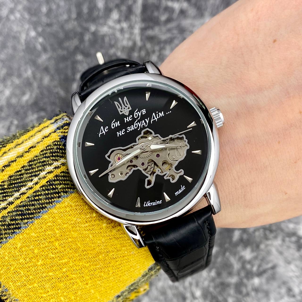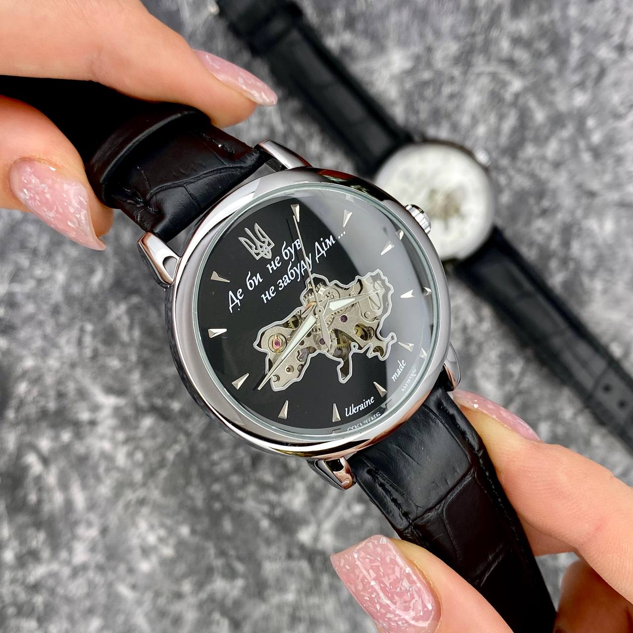 На его циферблате вы найдете не просто отображение времени, но и карту Украины — каждый момент, когда вы обращаете взгляд на часы, напоминает вам о ваших корнях и национальной идентичности. Точные метки, выполненные в 3D, сверкают на циферблате как символы важных мест вашей Родины.
