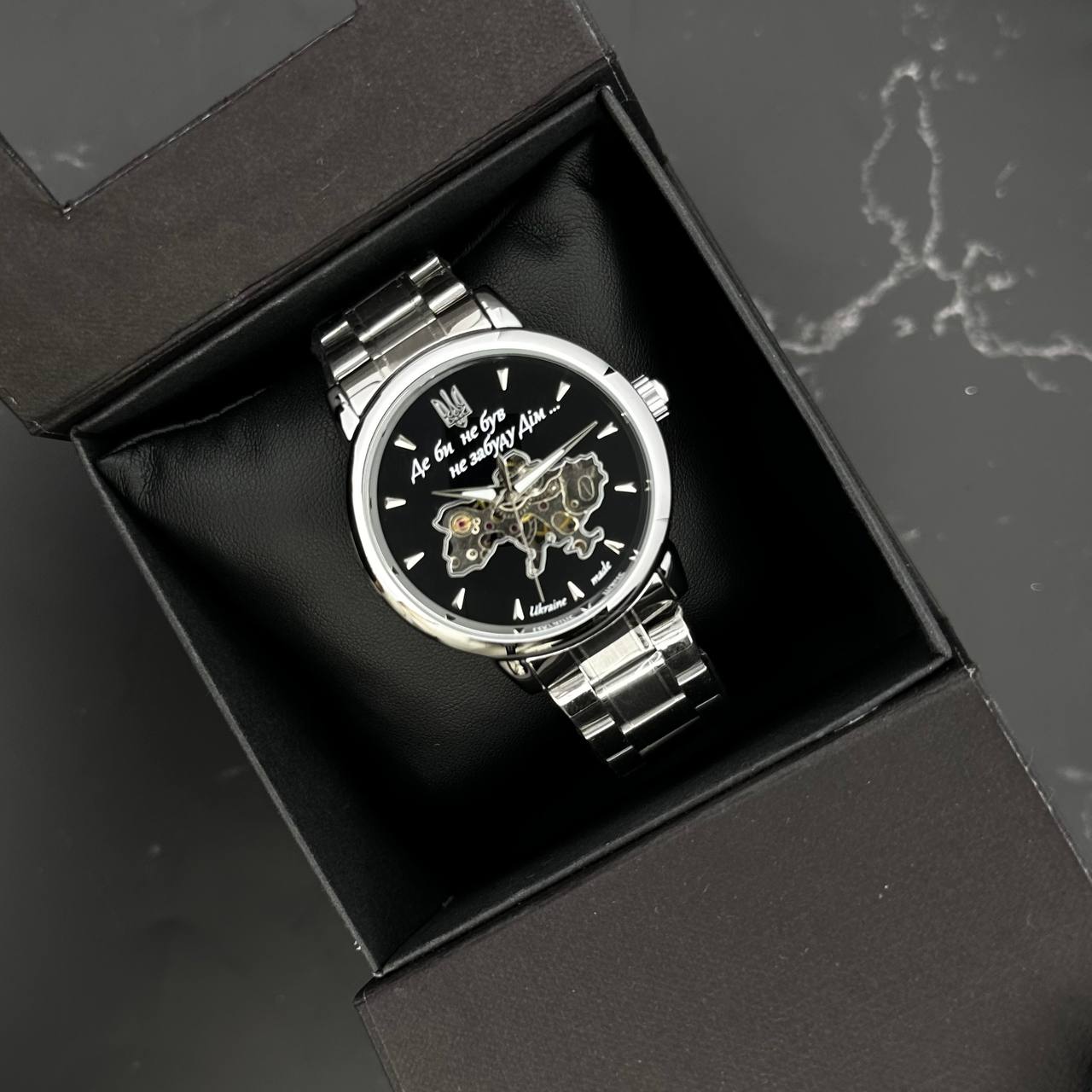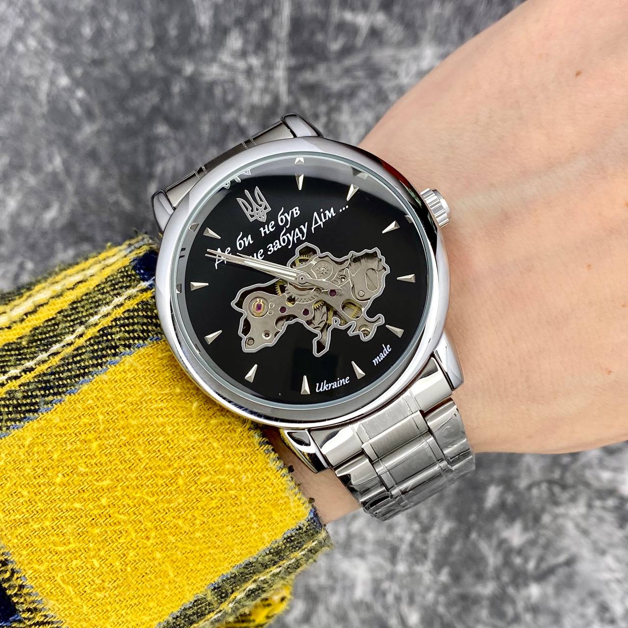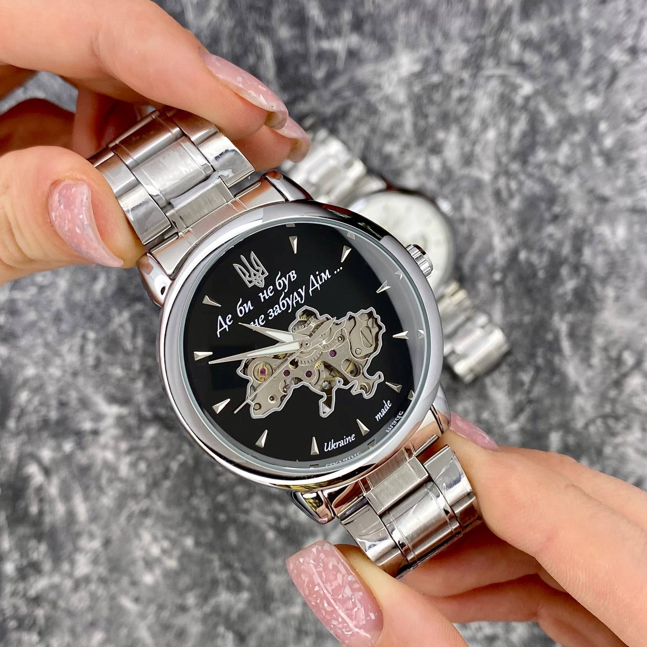 На его циферблате вы найдете не просто отображение времени, но и карту Украины — каждый момент, когда вы обращаете взгляд на часы, напоминает вам о ваших корнях и национальной идентичности. Точные метки, выполненные в 3D, сверкают на циферблате как символы важных мест вашей Родины.