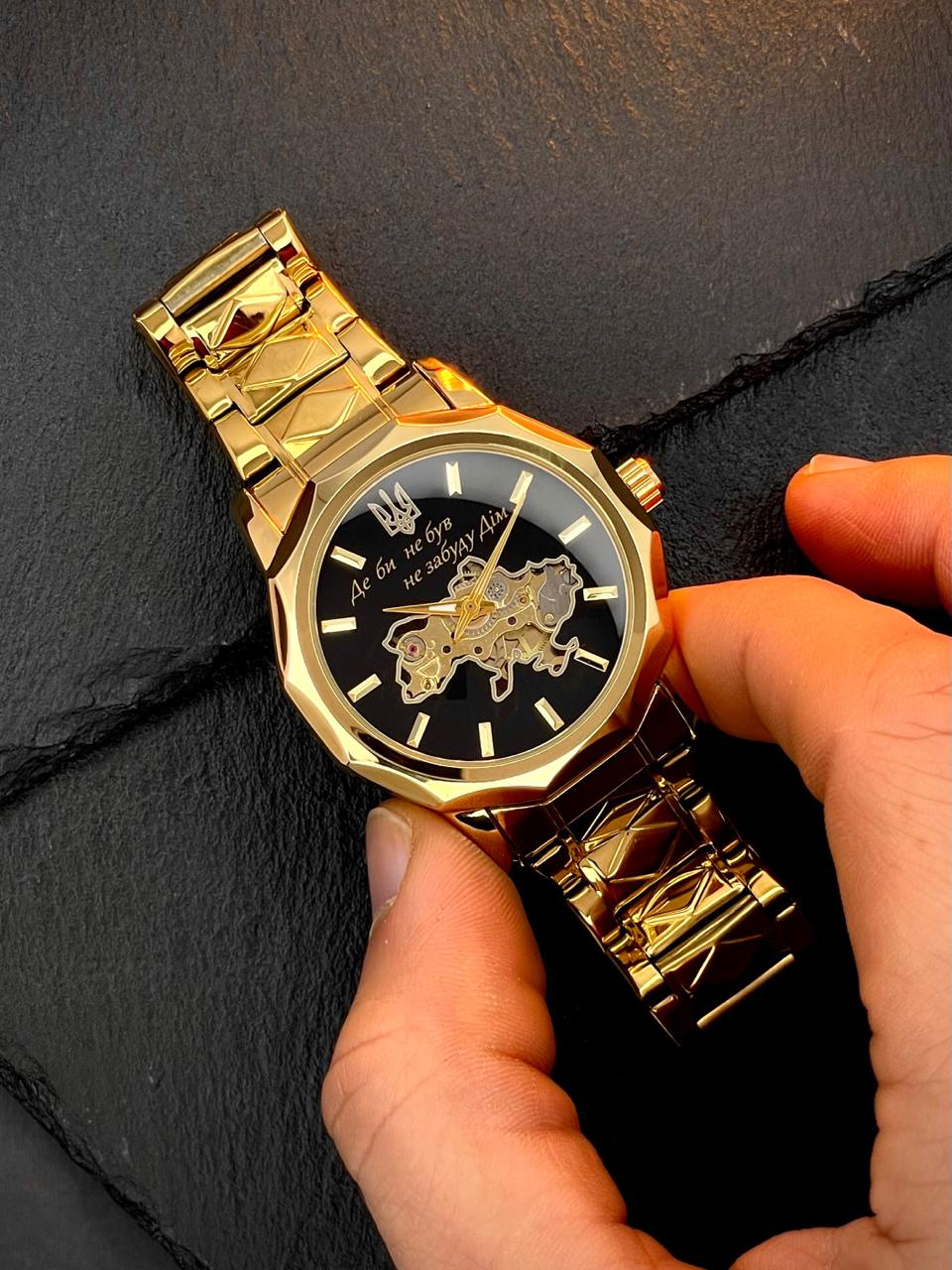 На его циферблате вы найдете не просто отображение времени, но и карту Украины — каждый момент, когда вы обращаете взгляд на часы, напоминает вам о ваших корнях и национальной идентичности. Точные метки, выполненные в 3D, сверкают на циферблате как символы важных мест вашей Родины.