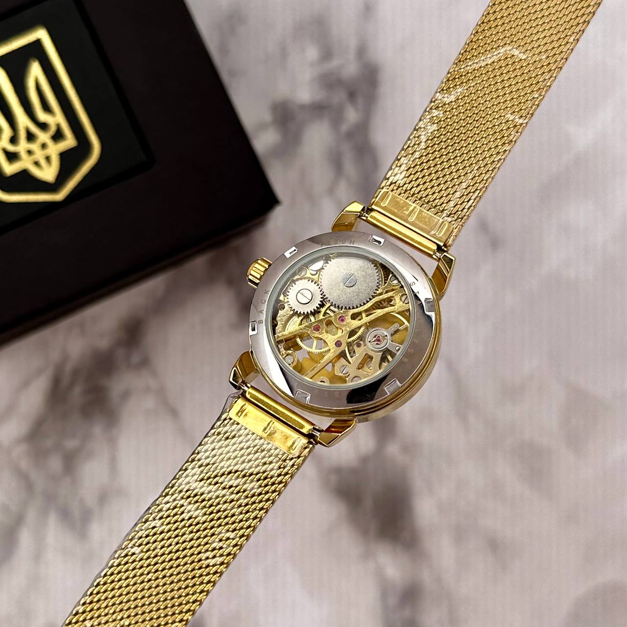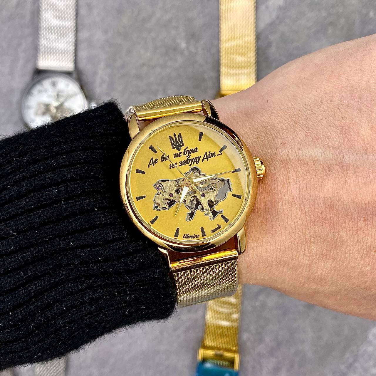 Часы наручные Patriot All Gold "Где бы ни была". Представляем стильные и элегантные часы Patriot All Gold, которые подходят для любого случая. Его изящный золотистый корпус и браслет из нержавеющей стали придают изделию роскошный вид, а круглая форма и классический циферблат с индексами создают непревзойденный стиль. Эти механические часы с водонепроницаемостью до 30 метров обеспечат вам надежность в любых условиях, а люминесцентная подсветка позволит легко считывать время в темноте. Вес моделей – всего 56 г, что делает его очень комфортным для ежедневного ношения. Часы имеют гарантию на 12 месяцев и изготовлены в Украине, что подчеркивает его высокое качество. Выберите Patriot All Gold для того, чтобы всегда быть в тренде и не отставать от времени!