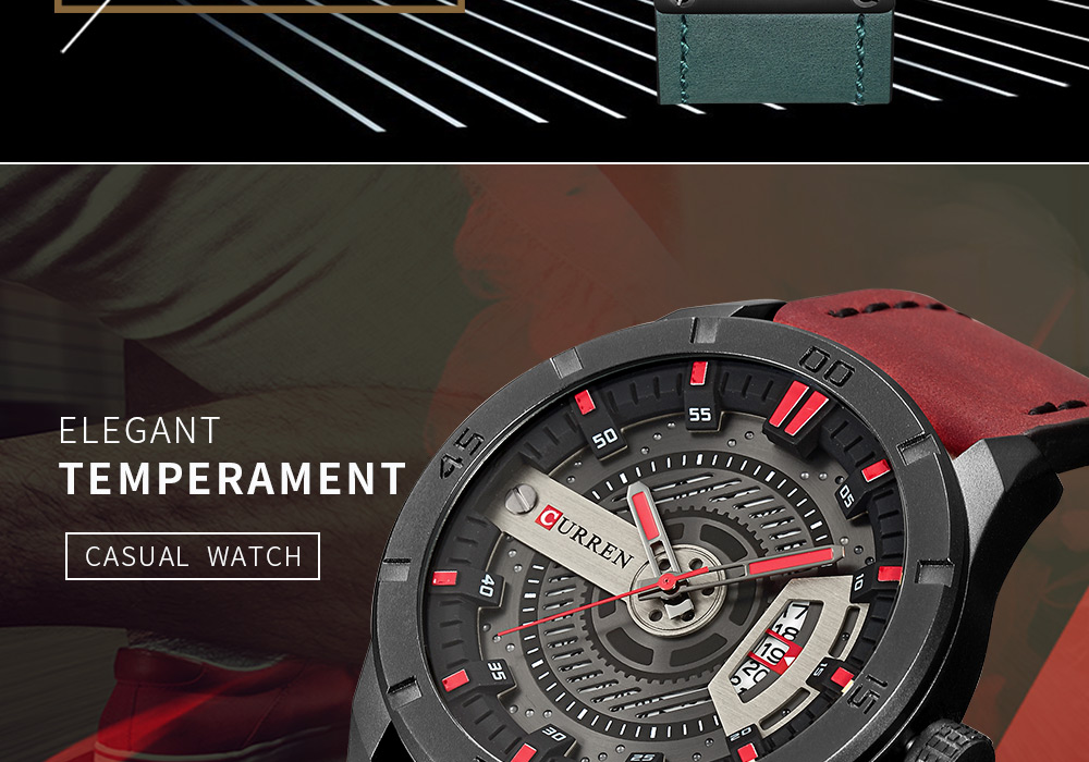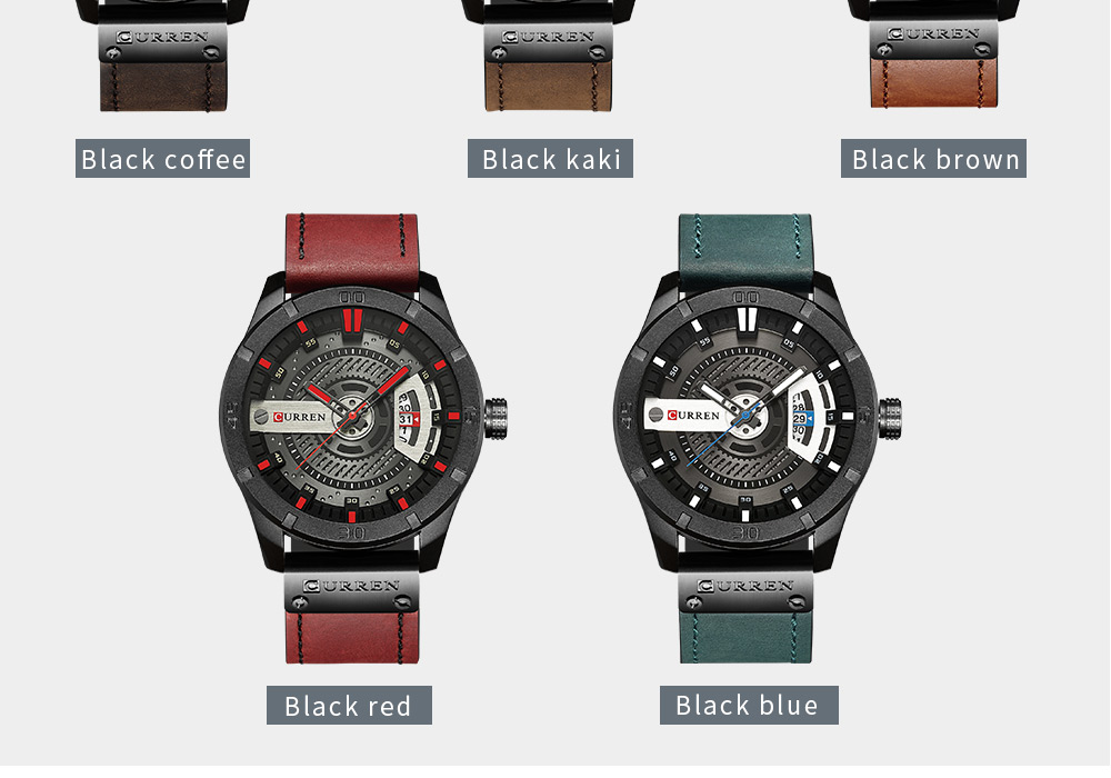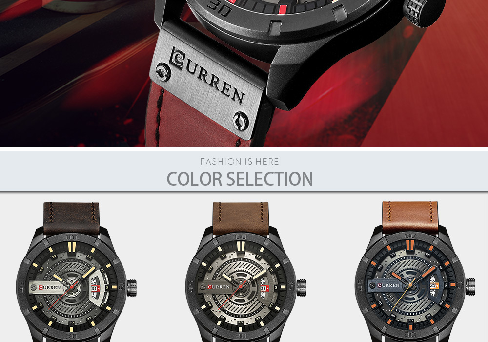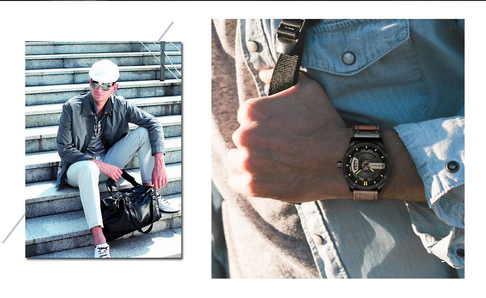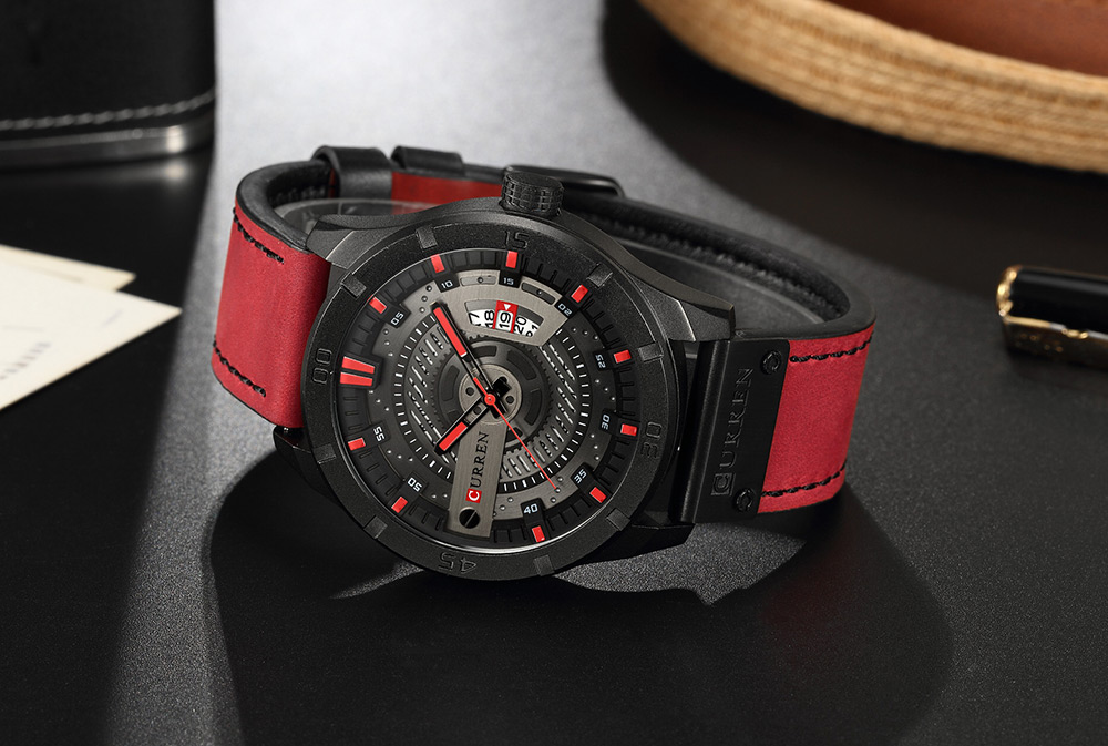 Побутова водонепроникність дозволяє іноді витримувати миття рук, потрапляння під дощ чи бризки. Ремінець у моделі з PU шкіри, яка в носінні практична. Застібка – класична, зручна під час щоденного використання. Самостійно не розстібається та добре фіксує годинник на зап'ястя.
