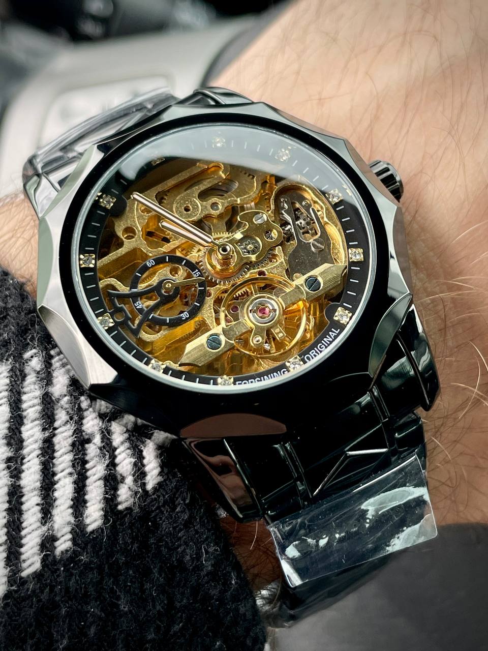 Часы Forsining производятся с использованием минерального стекла и нержавеющей стали. Минеральное стекло является прочным и устойчивым к царапинам, что придает долговечности аксессуару и обеспечивает его защиту от внешних повреждений. Нержавеющая сталь, используемая в корпусе часов, не только придает ему элегантный вид, но и обеспечивает стойкость к коррозии и износу. Все это гарантирует высокое качество часов Forsining.