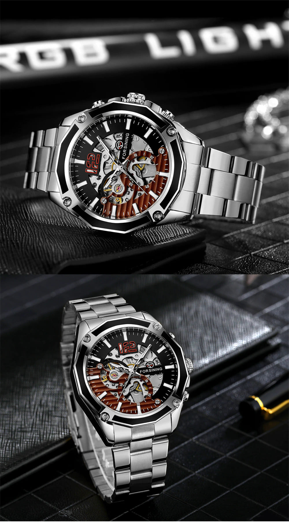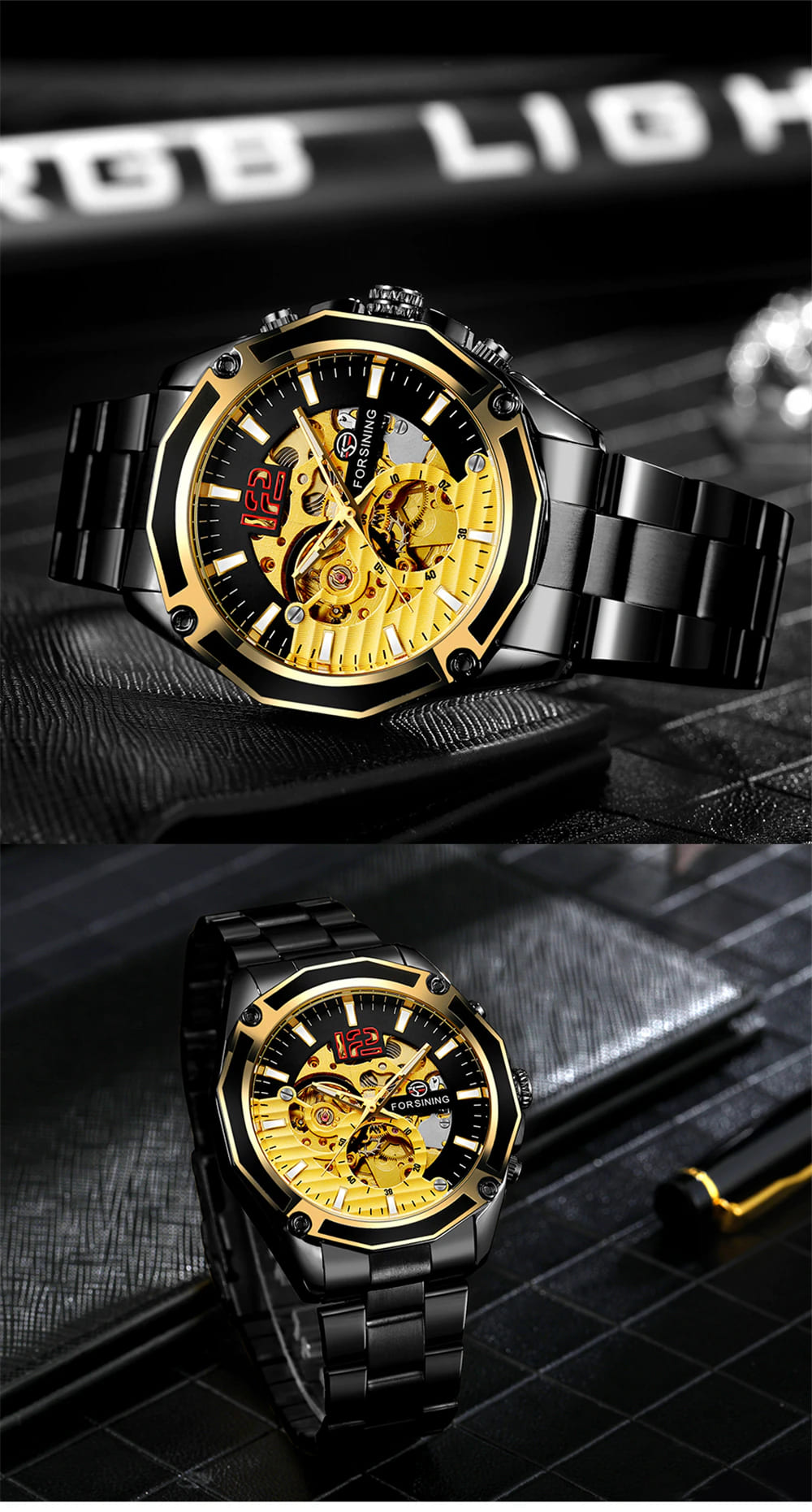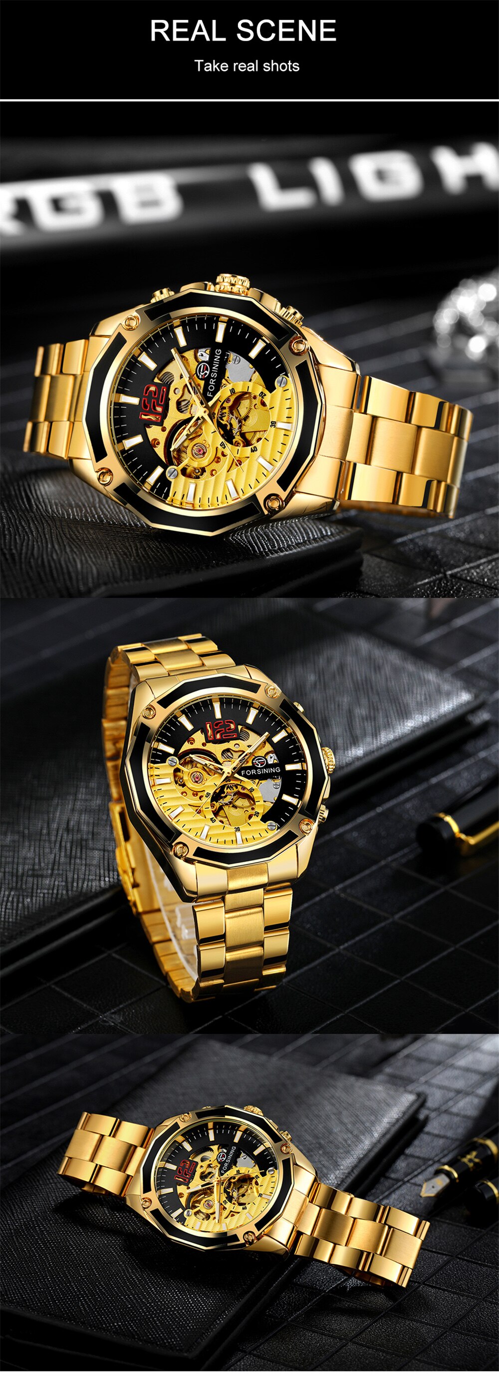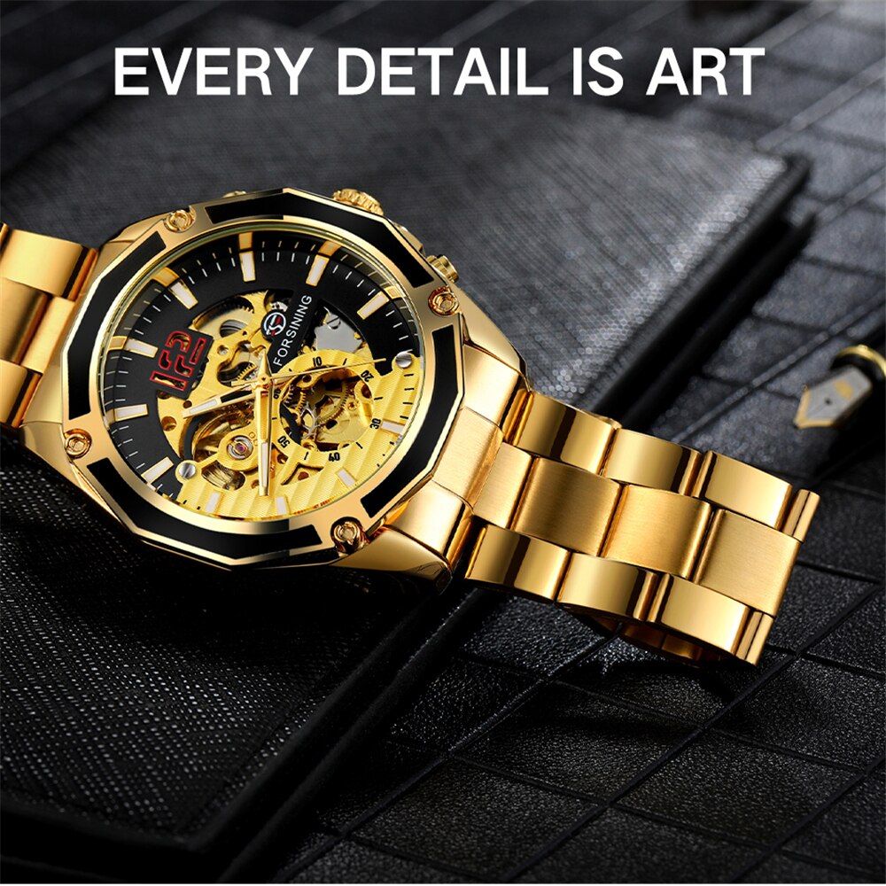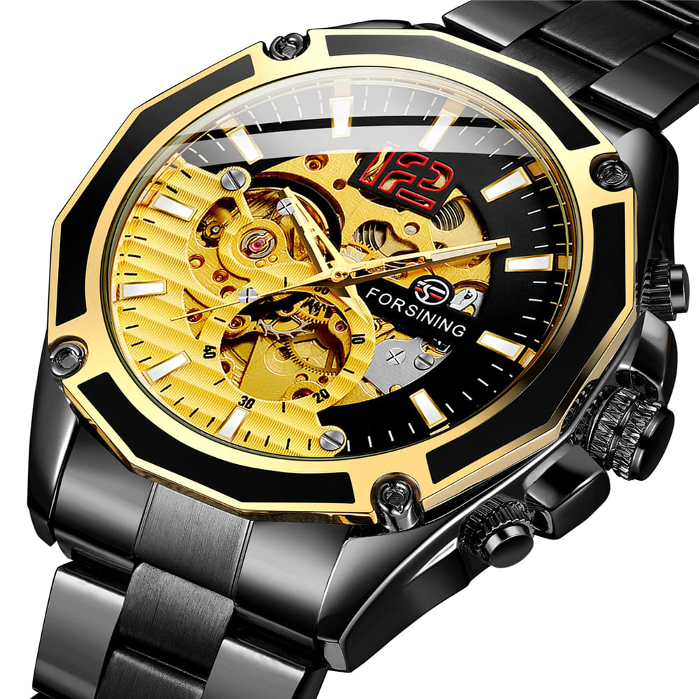 Мужские часы в механике с автоподзаводом реализованы в модели GMT 1183 от оригинального бренда Forsining. Включают главные функции: часы, минутки, секунды. Имеют защитное минеральное стекло на циферблате, которое: