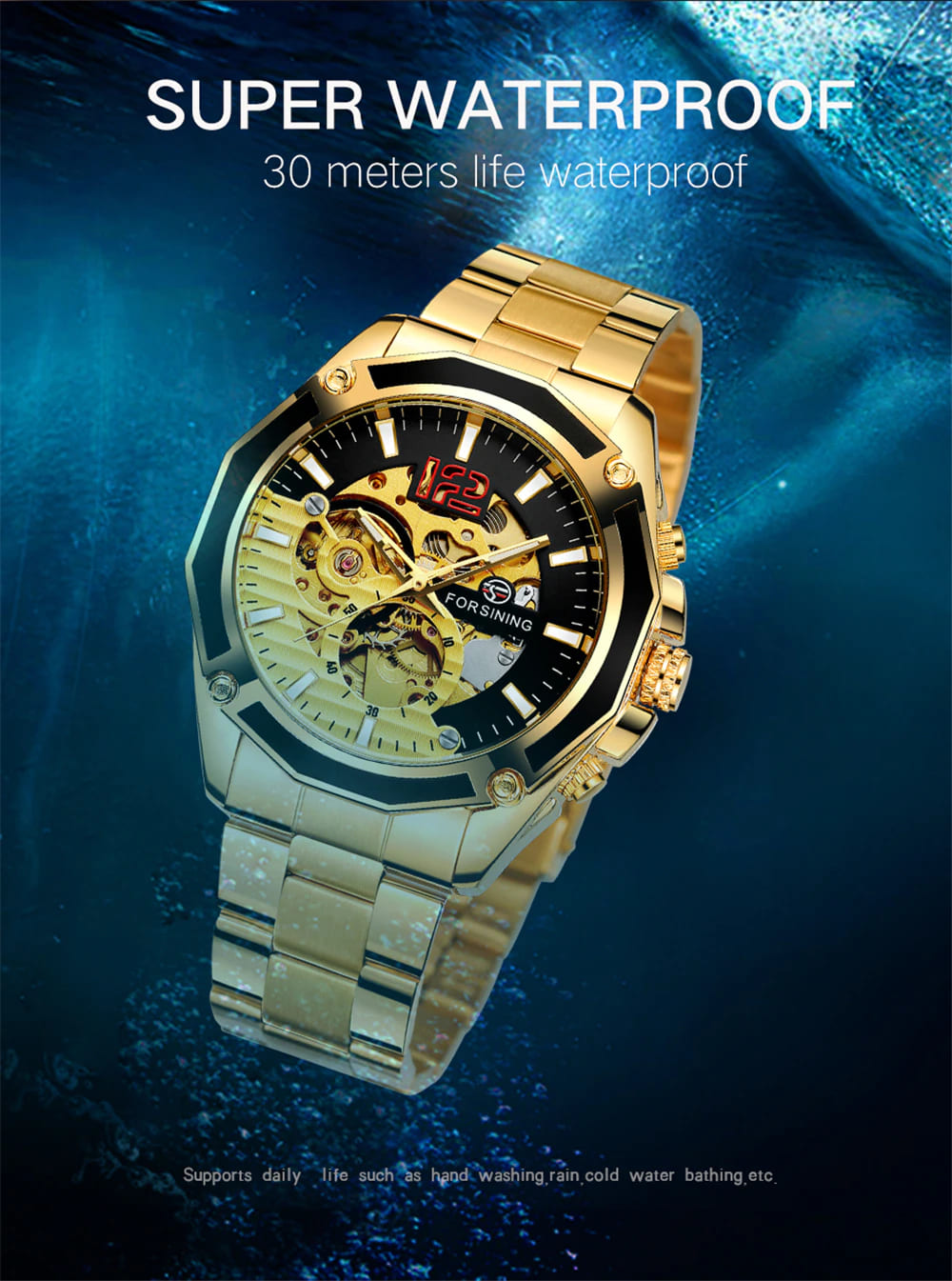 В часах можно мыть руки, поскольку обладают бытовой водонепроницаемостью. Модель полностью выполнена из часовой стали и долго сохраняет свой первоначальный внешний вид. На браслете установлена раскладная застежка. Если потянуть за браслет, то часы расстегнуты, но не упадут.