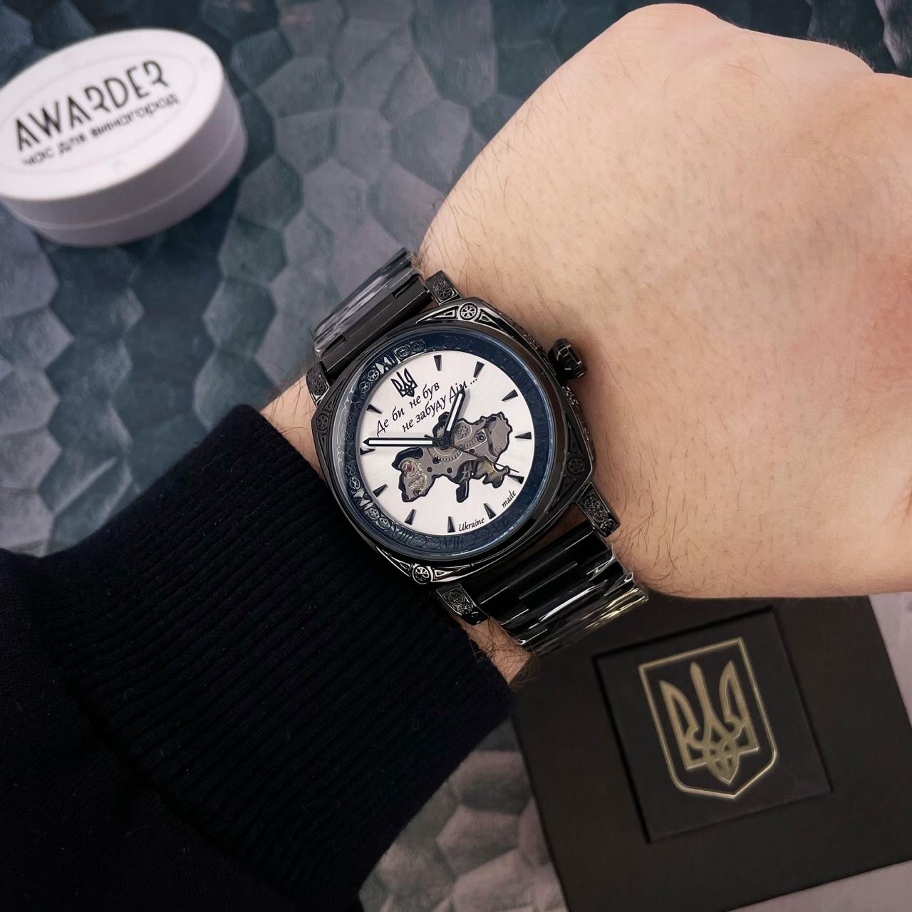 Часы наручные Awarder 021-3D Где бы ни был Black-White Steel