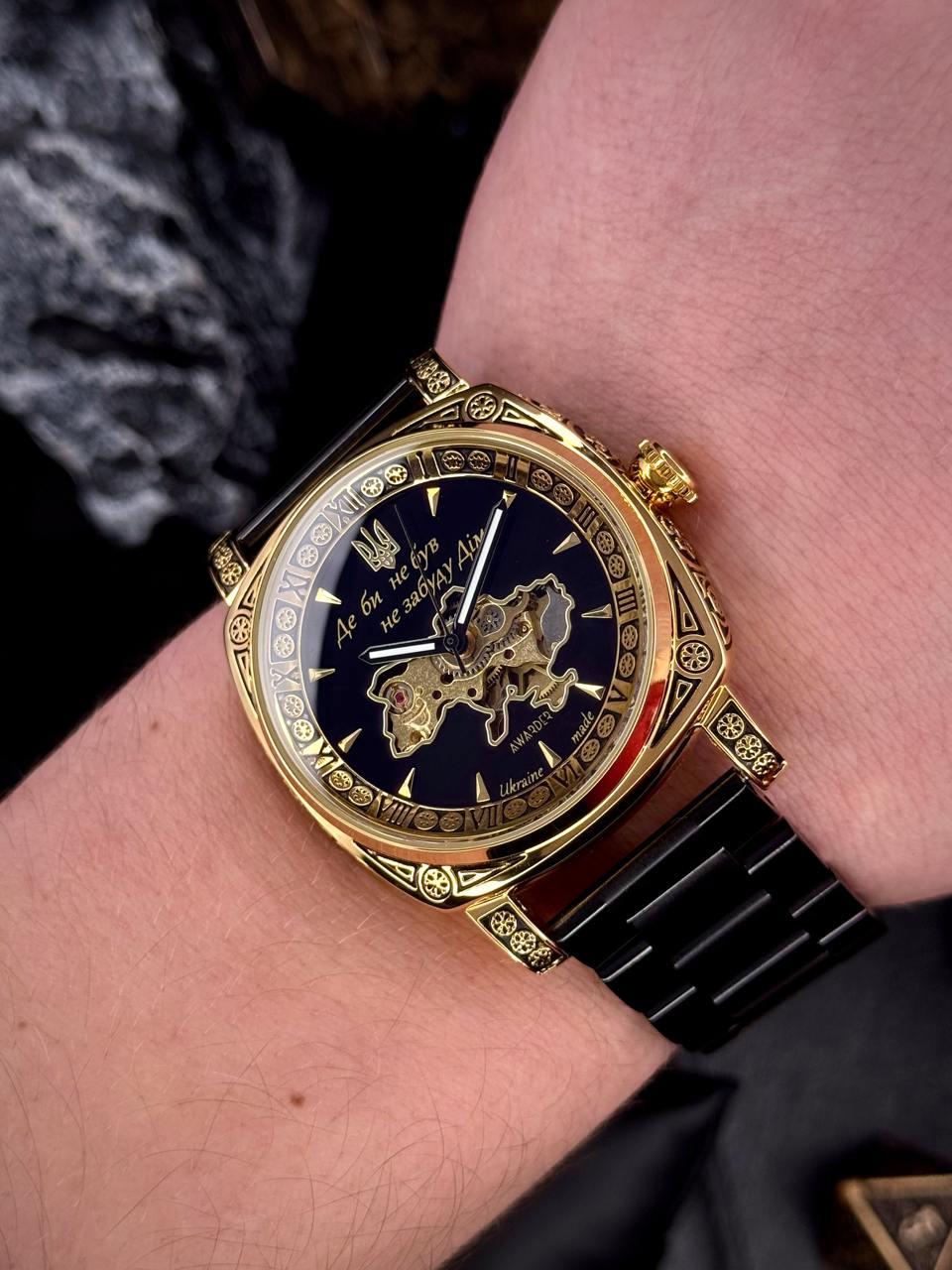 Часы наручные Awarder 021-3D Где бы ни был Gold-Black Steel
