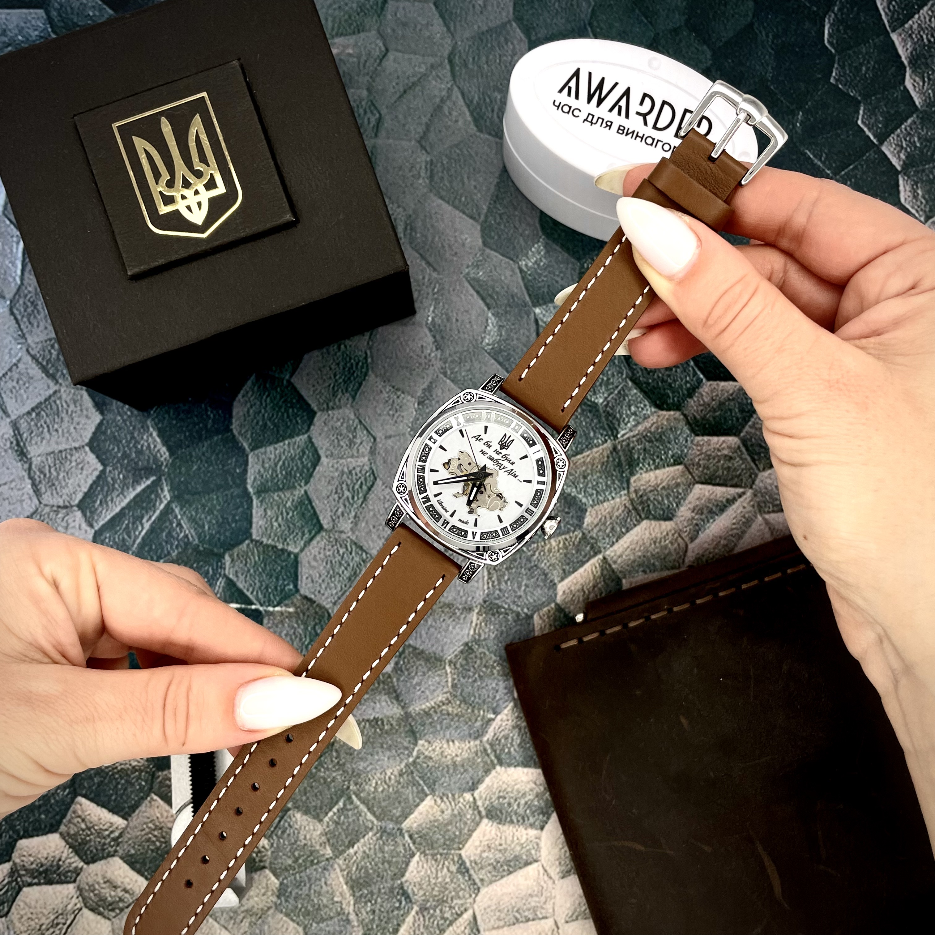 Женские часы Awarder 021 – шедевр среди наручных часов. Эксклюзивные часы с патриотическим дизайном, изготовленные в Украине. Центральный элемент циферблата – карта Украины, выполненная в виде открытого механизма. Точный и надежный механизм. Изящные детали, которые подчеркнут Ваш стиль и напоминают о родной земле, где бы вы ни находились.
