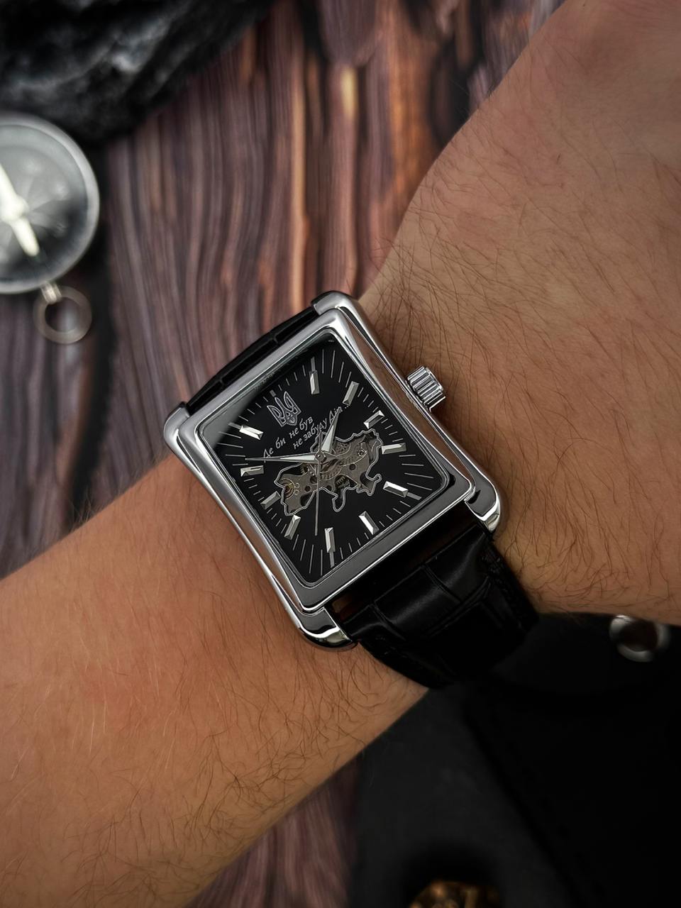- Кожаный ремешок: Черный кожаный ремешок выглядит стильно и комфортно сидит на руке, позволяя носить часы в течение всего дня без дискомфорта.