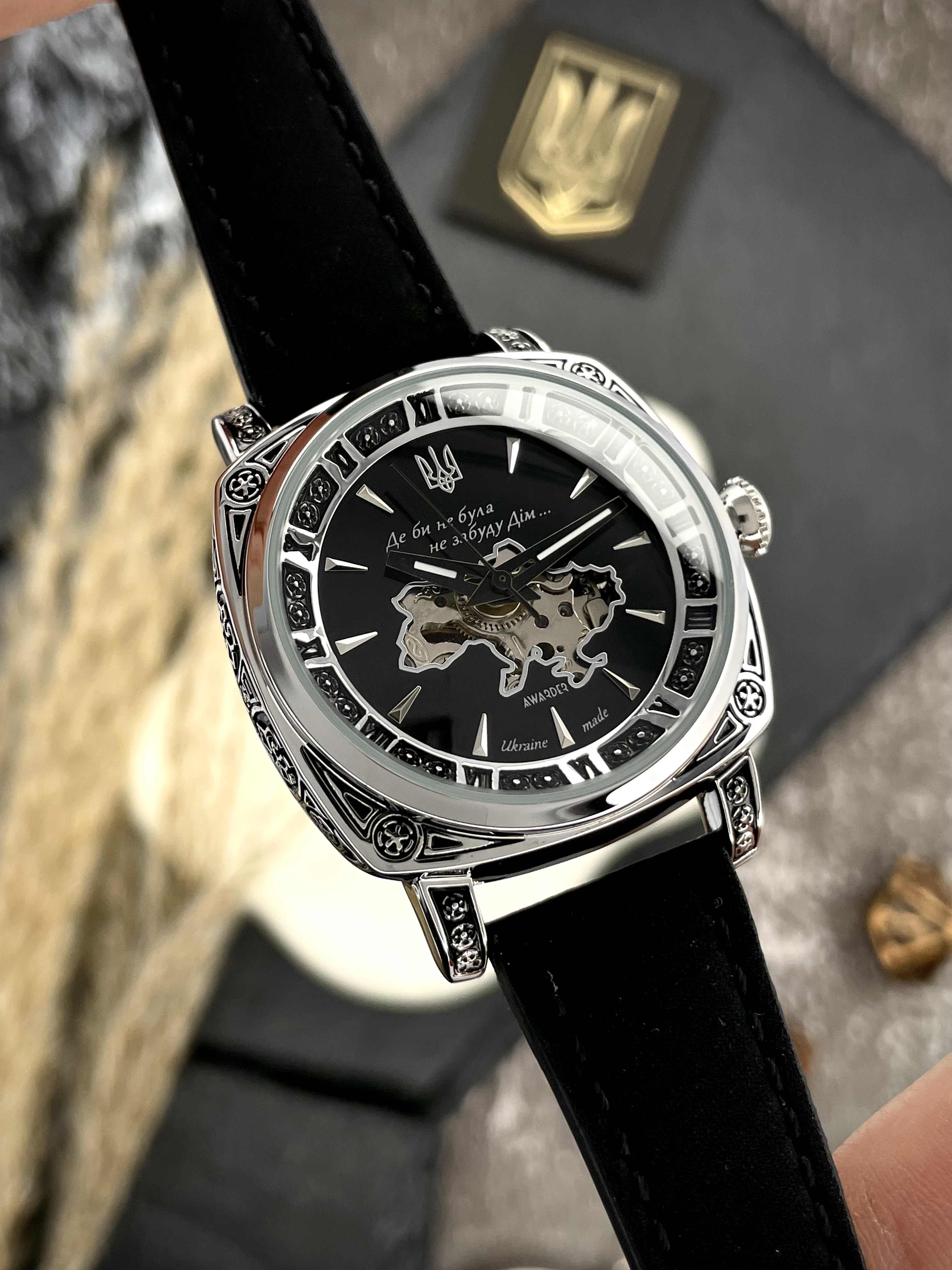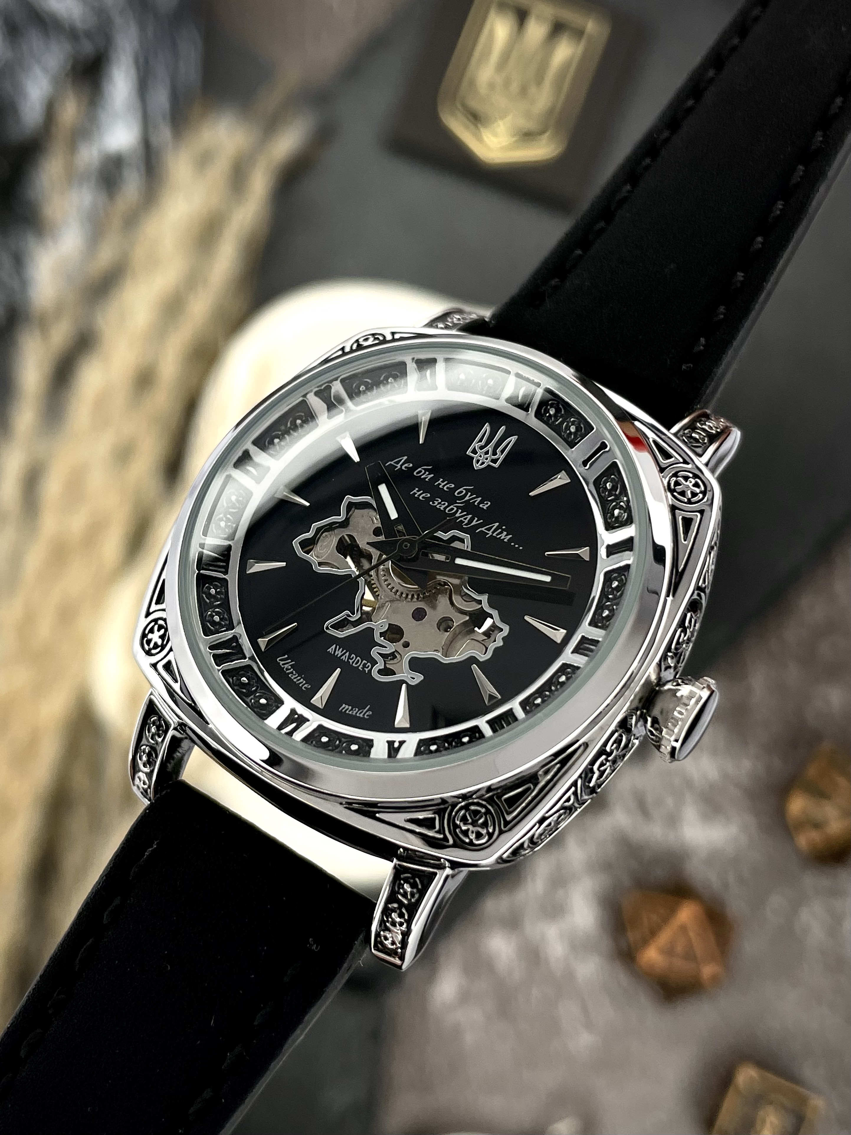 Часы наручные Awarder 021-3D Где бы ни была Silver-Black-Black Leather