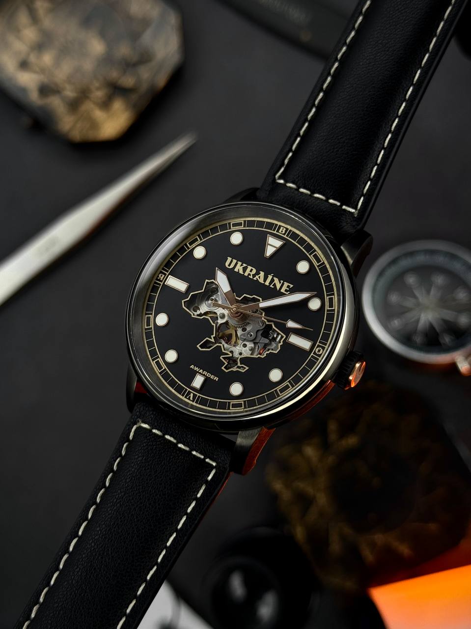 Часы Awarder 044 Automatic «Ukraine All Black» — это не просто аксессуар. Это частичка истории, вплетенная в каждый механизм. Его сердце — настоящая гильза, прошедшая службу на фронте, превращенная в произведение искусства благодаря ювелирной работе украинских мастеров.