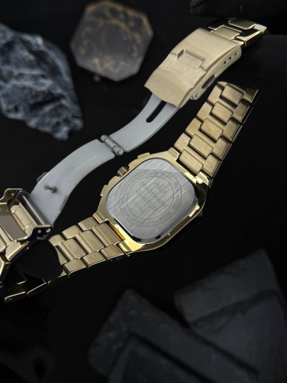 - Материал: Корпус и ремешок изготовлены из нержавеющей стали, что обеспечивает прочность и долговечность.