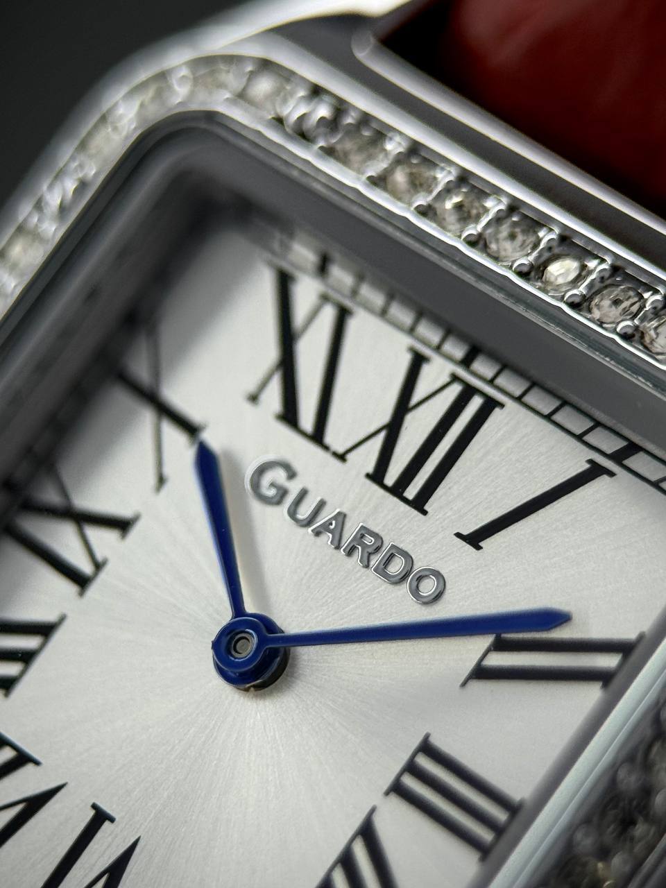 Часы GUARDO 012832-3 – это элегантный аксессуар для современной женщины, сочетающий в себе стиль и функциональность. Его квадратный корпус, изготовленный из нержавеющей стали серебристого цвета, придает ему изысканность, а красный кожаный ремешок придает яркие акценты.