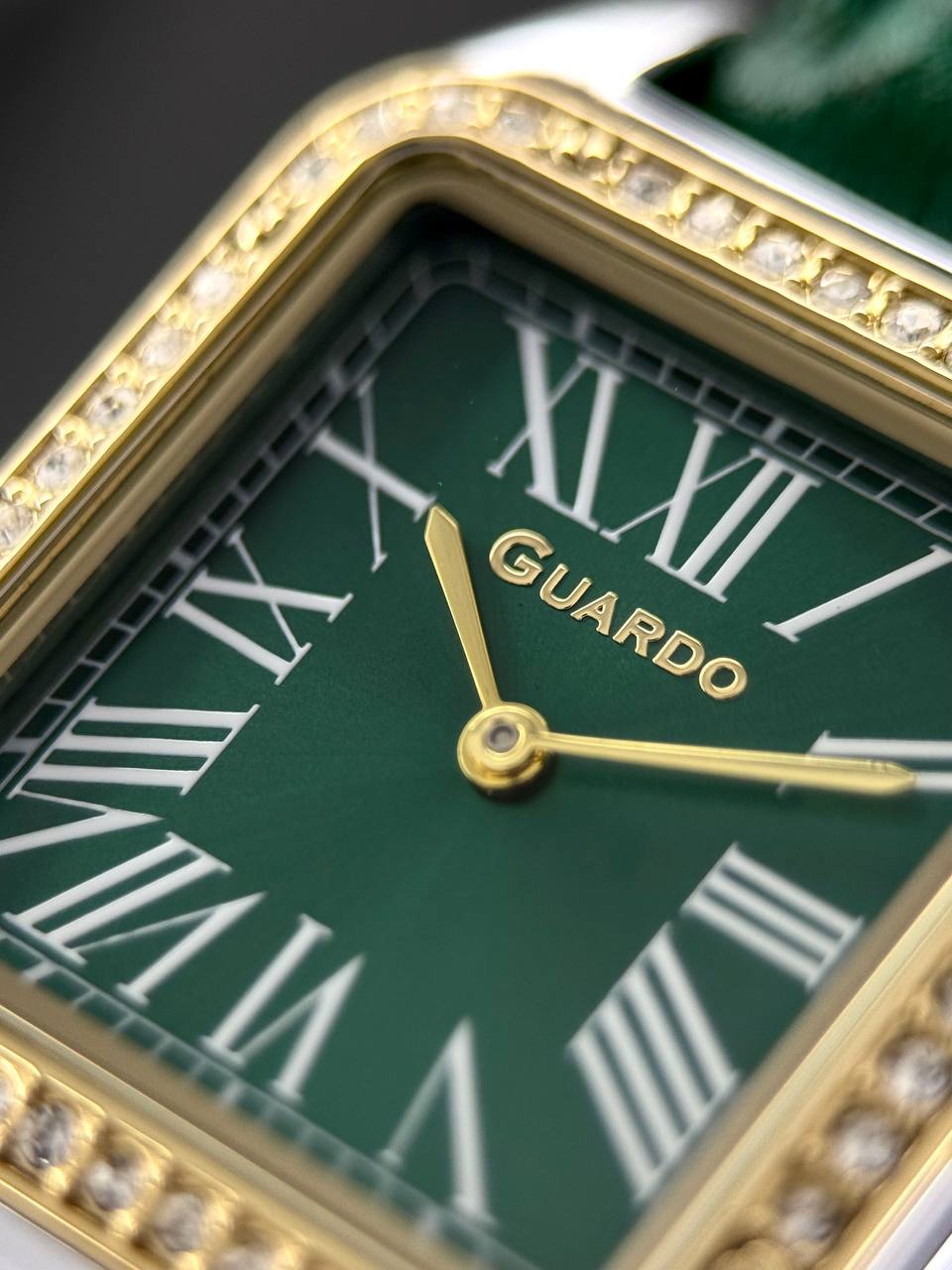 GUARDO 012832-7 также оснащен люминесцентной подсветкой, что делает его удобной в темноте, а стильный циферблат с римскими цифрами легко читается. Часы имеют функцию отображения времени, дней недели и числа, что придает ему практичность.