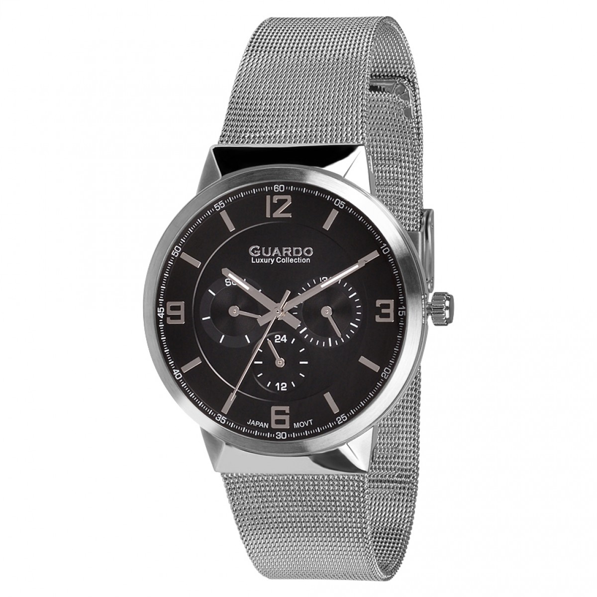 GUARDO S1626-1 имеет водонепроницаемость до 30 метров, что позволяет носить его во время легких водных процедур без опасений. Длина ремешка составляет 22 мм, а общие размеры часов – 42 х 48 мм. Часы поставляются с 12-месячной гарантией, что обеспечивает дополнительную уверенность в качестве бренда Guardo.