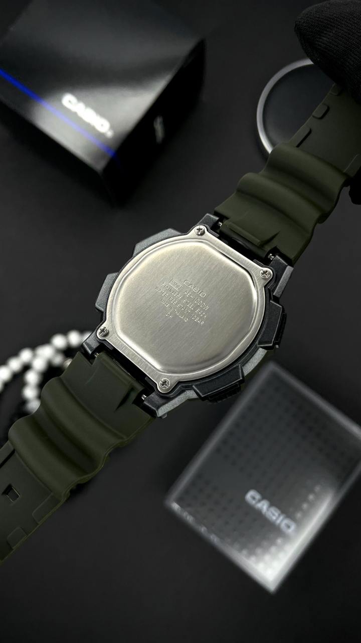 Часы Casio AE-1000W-3A – это надежный компаньон для активных мужчин, ценящих стиль и функциональность. С водонепроницаемостью до 100 метров эти часы идеально подходят для занятий спортом и отдыха на воде. Корпус из прочного полимера и легкий ремешок обеспечивают комфорт при ношении, а стильный черный цвет корпуса в сочетании с зеленым ремешком придает им современный вид. Эти спортивные и армейские часы оснащены электронным циферблатом с индикацией часов, минут и секунд, которые отчетливо читаются благодаря подсветке электролюминесцентного типа. Вес часов всего 51 грамм, что делает его практически неощутимым на запястье, а его размеры 43 х 48 мм и круглая форма корпуса подходят для любого стиля. Гарантия на часы составляет 24 месяца, что подтверждает качество японского производителя Casio. Casio AE-1000W-3A – это надежность, стиль и удобство в одном устройстве!