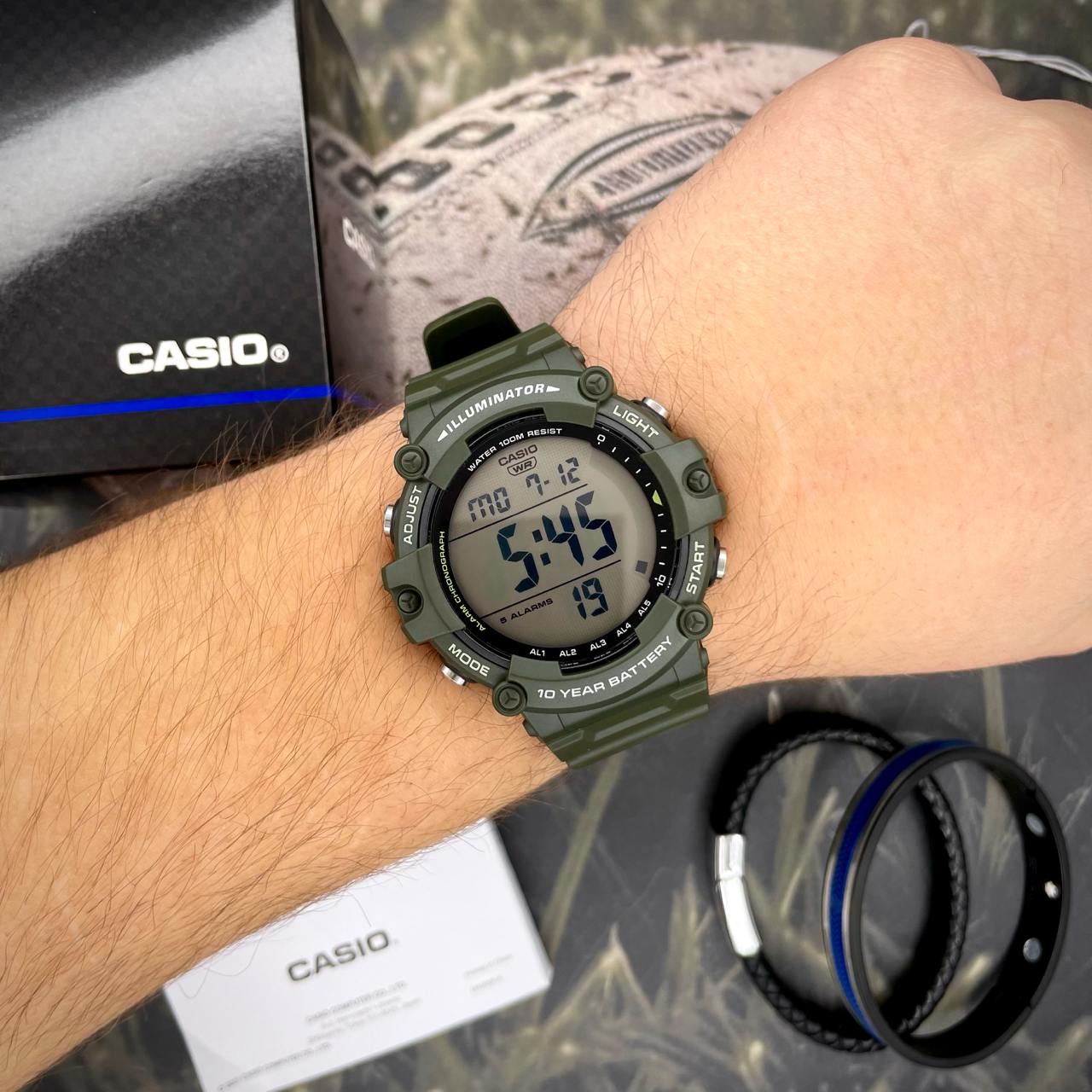 Предлагаем вам спортивные часы Casio AE-1500WHX-3A , идеальный выбор для активных мужчин. Эти стильные часы выполнены из прочного полимера темно-зеленого цвета, что придает им современный вид. Водонепроницаемые до 100 м, они станут вашим надежным спутником в любых условиях, будь то спортивные занятия или повседневное использование. В оснащении часов – электронный циферблат с арабскими цифрами, функцией подсветки и индикацией часов, минут и секунд. Вес всего 57 г и компактные размеры 47х51 мм делают его комфортным в носке. Гарантия на товар составляет 24 месяца, что подтверждает качество продукции от японского бренда Casio. Не упустите возможность дополнить свой стиль практичным и элегантным аксессуаром!