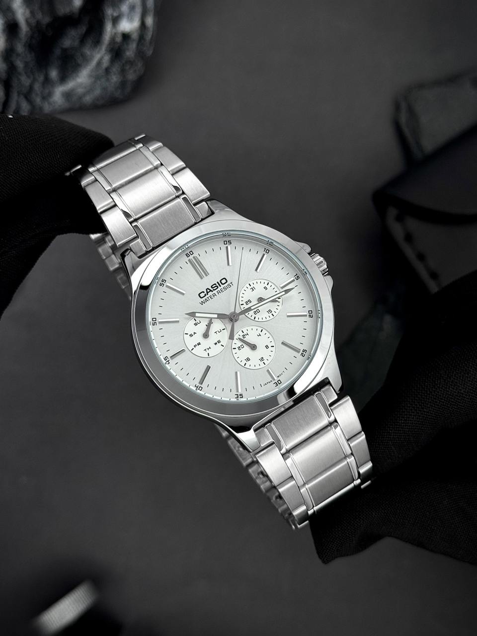 Представляем мужские часы Casio MTP-V300D-7A , воплощение классического стиля и надежности. Этот элегантный аксессуар со стальным корпусом и браслетом серебристого цвета станет отличным дополнением к вашему образу. Благодаря водонепроницаемости до 50 метров вы сможете носить его как во время повседневных дел, так и во время активного отдыха. Минеральное стекло обеспечивает высокую стойкость к царапинам, а кварцевый механизм гарантирует точность в измерении времени. Часы оснащены люминесцентной подсветкой, позволяющей удобно видеть время в темноте. Циферблат со стрелками и индексами придает ему универсальный вид, а размеры (48 х 42 мм) и вес в 97 г делают его комфортным для ежедневного ношения. При покупке Casio MTP-V300D-7A вы получаете не только стильный аксессуар, но и надежного партнера на каждый день, с гарантией 24 месяца от известного японского бренда.
