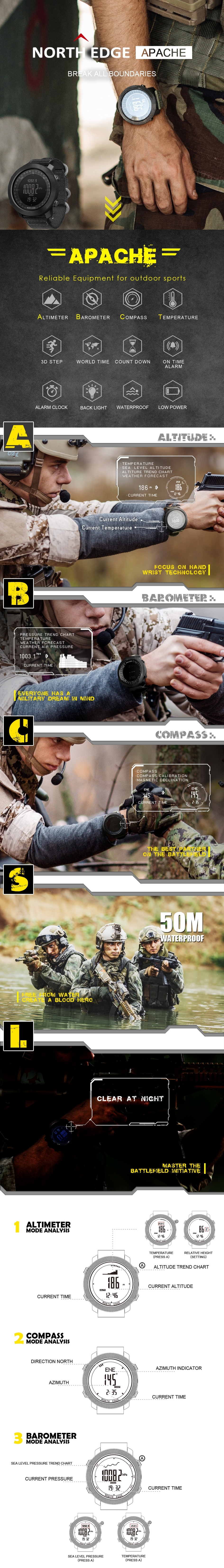 North Edge – это бренд тактических часов, которые специально разработаны для военных, пилотов, моряков и т.д., работающих в сверхсложных условиях. Эти часы предназначены для использования в экстремальных ситуациях, где точность, надежность и функциональность являются критическими.