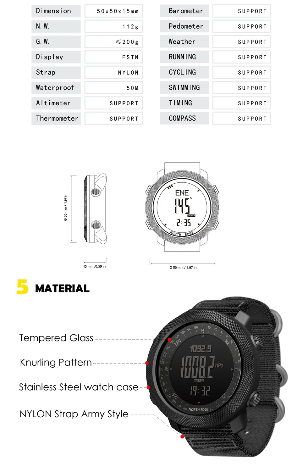 Часы от бренда North Edge могут выдерживать ультрахолодные температуры, а также имеют важные функции, такие как компас, альтиметр, будильник и другие. Бренд North Edge обладает репутацией надежных и качественных часов.