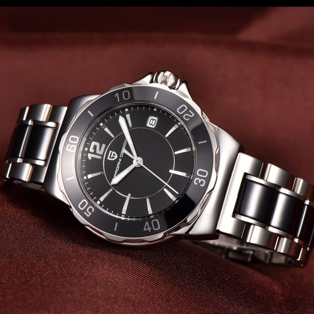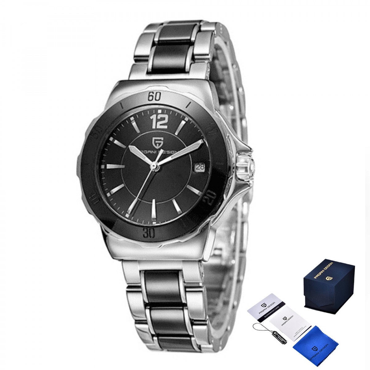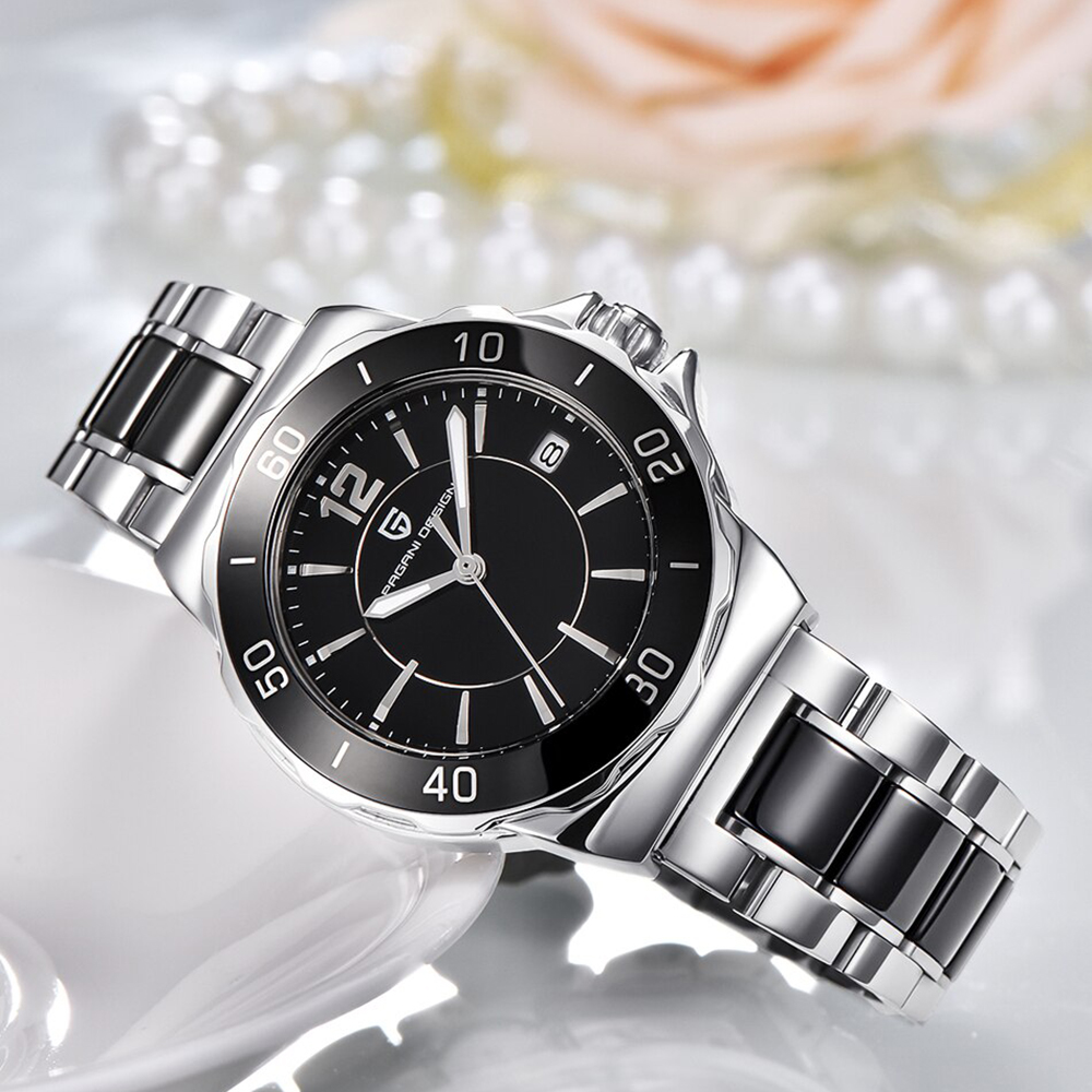 Времена Pagani Design CX-2555 Silver-Black – элегантный женский аксессуар, выполненный в классическом стиле. Корпус часов изготовлен из нержавеющей стали, что обеспечивает высокую стойкость, а ремешок сочетает керамику и нержавеющую сталь, что придает комфорт при ношении. Сапфировое стекло защищает циферблат, на котором расположены индикаторы часов, минут, секунд и числа. Водонепроницаемость до 30 метров позволяет использовать времена в повседневной жизни без лишних беспокойств. Люминесцентная подсветка обеспечивает удобство чтения в темноте. Длина ремешка – 22 см, ширина – 18 см, а вес часов составляет 102 грамма. Гарантия на время составляет 12 месяцев. Этот стильный аксессуар от бренда Pagani Design станет отличным дополнением к вашему образу.