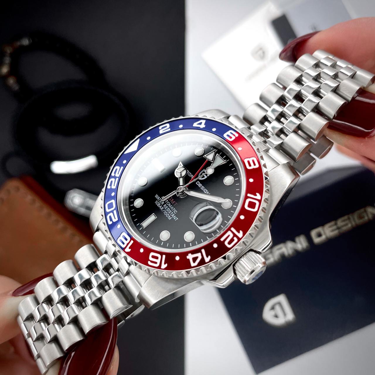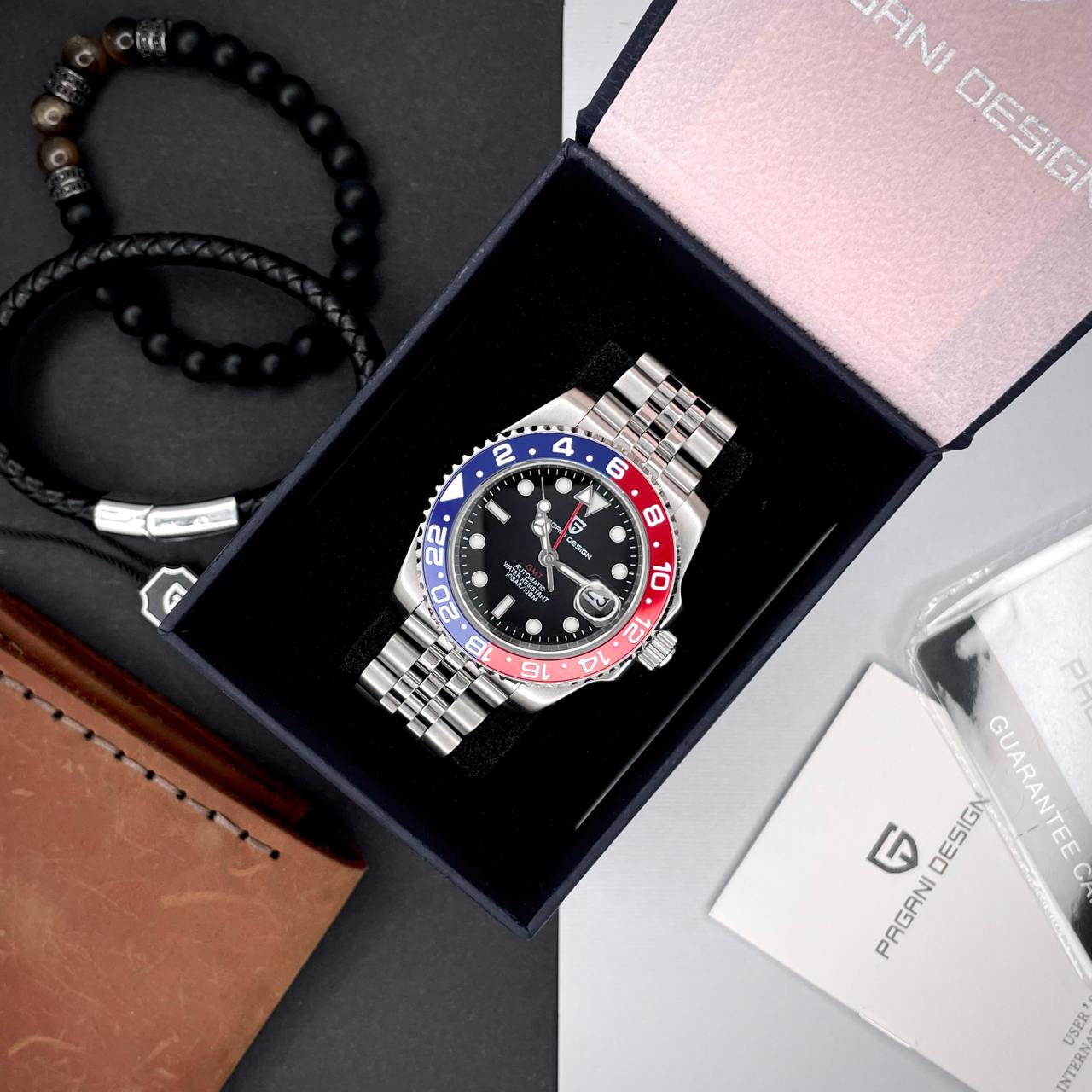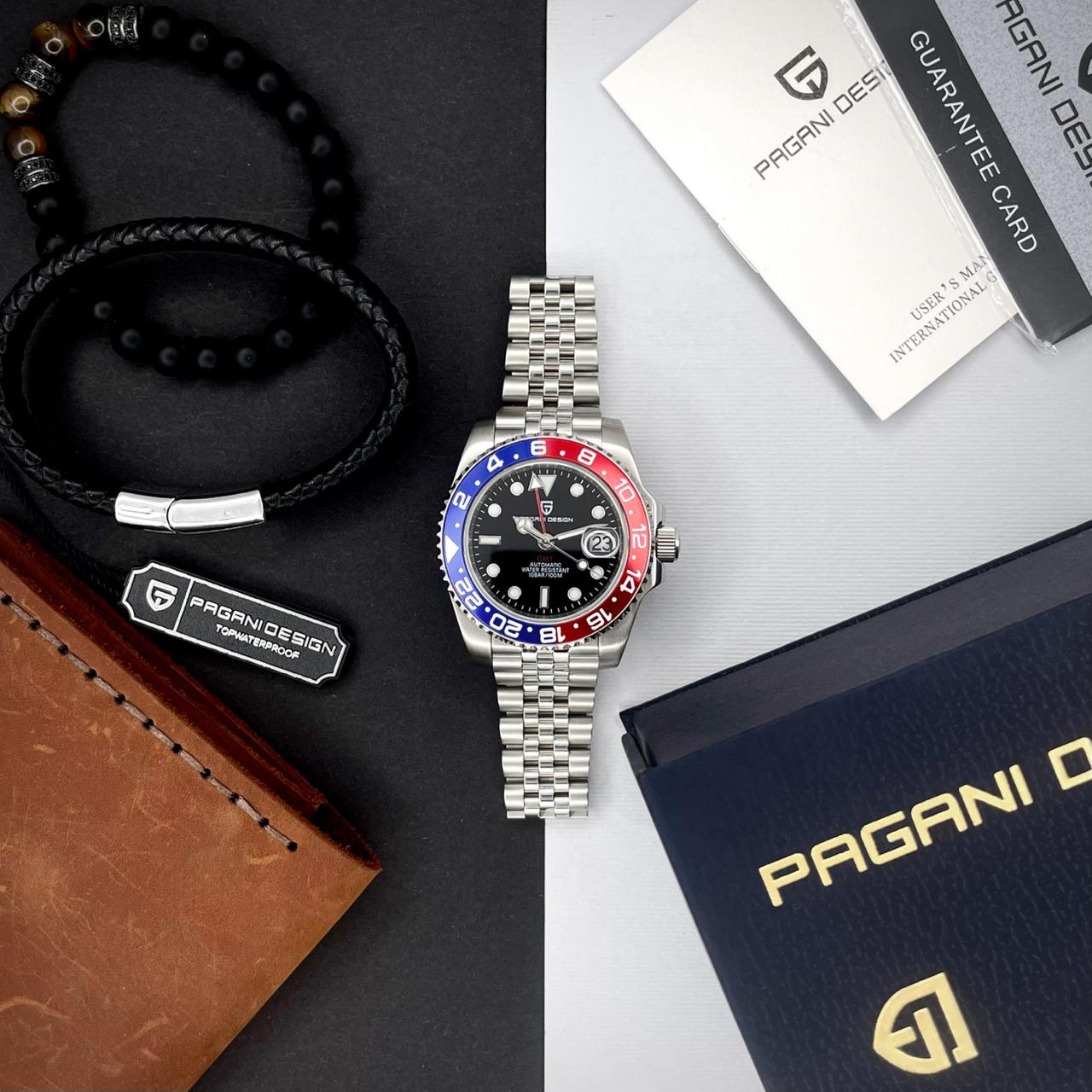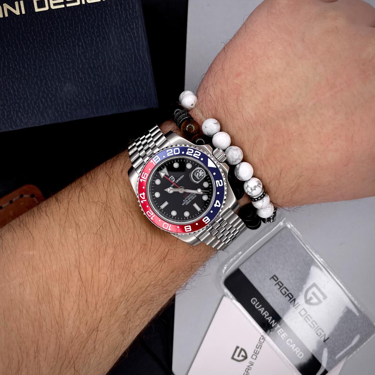 Часы Pagani Design PD-1662 Pepsi – это стильный и функциональный аксессуар, отлично подходящий для мужчин. Он изготовлен из нержавеющей стали, имеет круглую форму корпуса и сапфировое стекло, что обеспечивает его высокую стойкость к повреждениям. Водонепроницаемость до 100 м делает его безупречным для аква видов спорта. Эти часы оборудованы механическим механизмом с автоподзаводом и функцией календаря. Классический циферблат с арабскими цифрами оснащен люминесцентной подсветкой, обеспечивающей читабельность в любых условиях. Длина ремешка составляет 22 см, вес – 156 г. Модель имеет серебристый корпус со стильными синими акцентами. Часы поставляются с гарантией на 12 месяцев и станут удачным дополнением к любому образу, от casual до классического. Произведено в Китае под брендом Pagani Design.