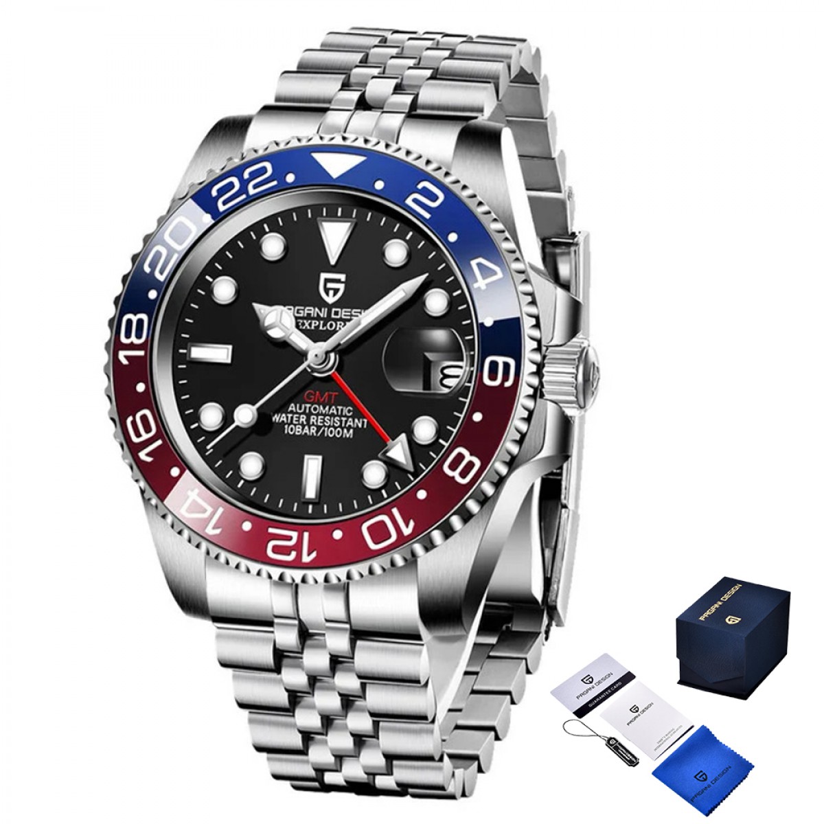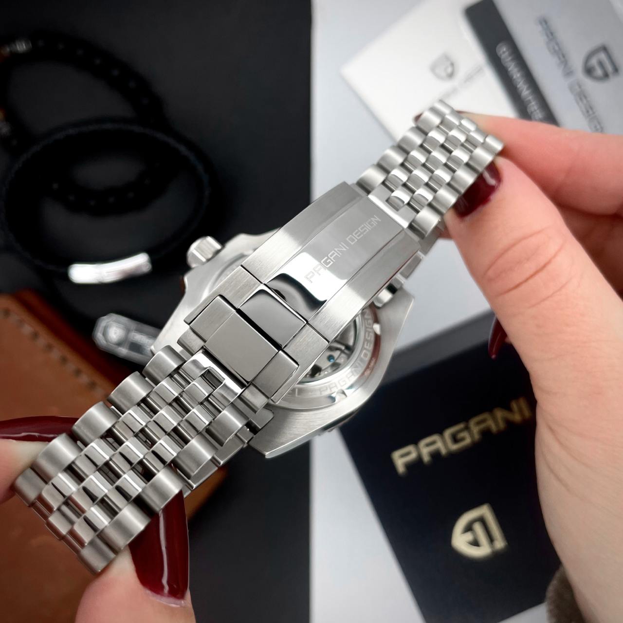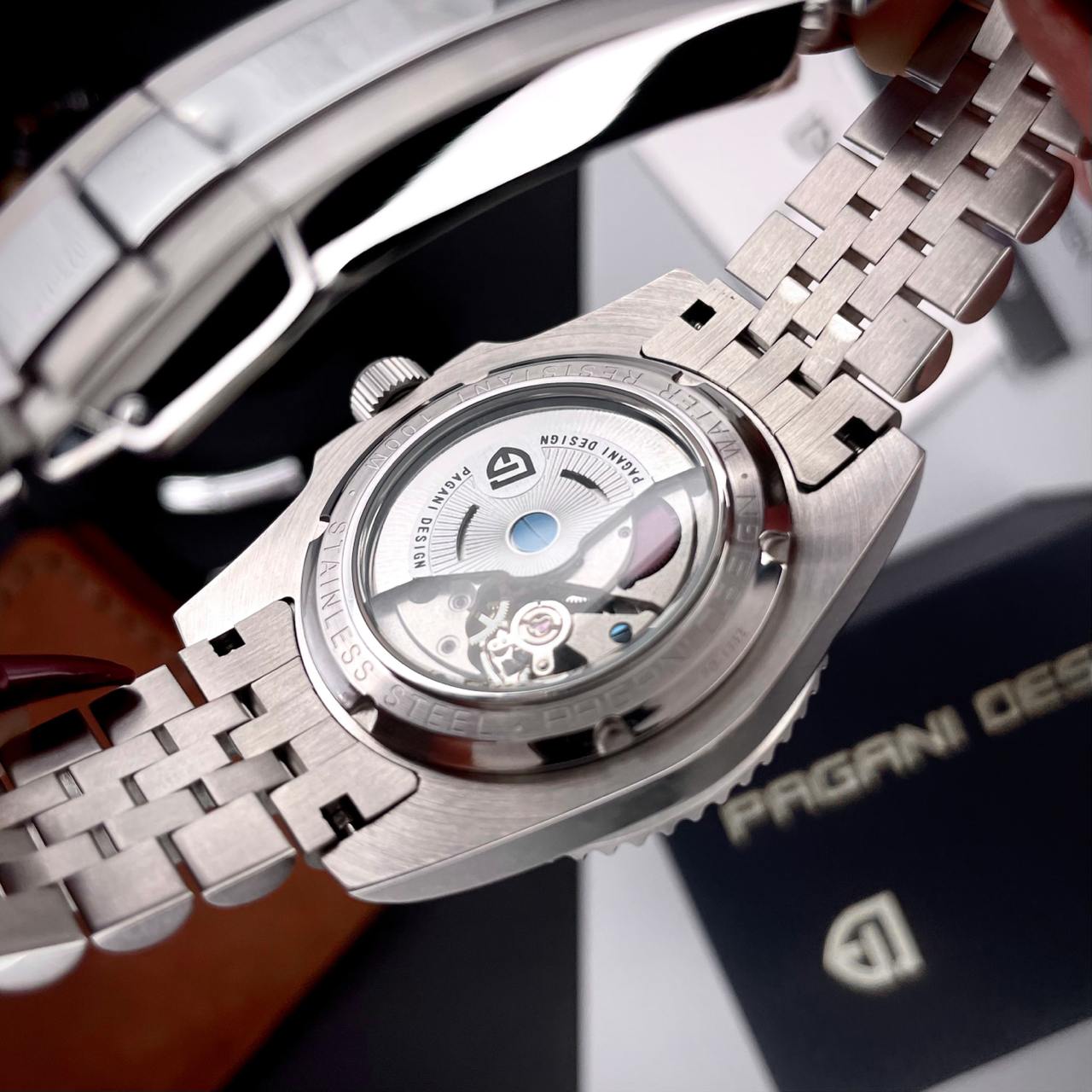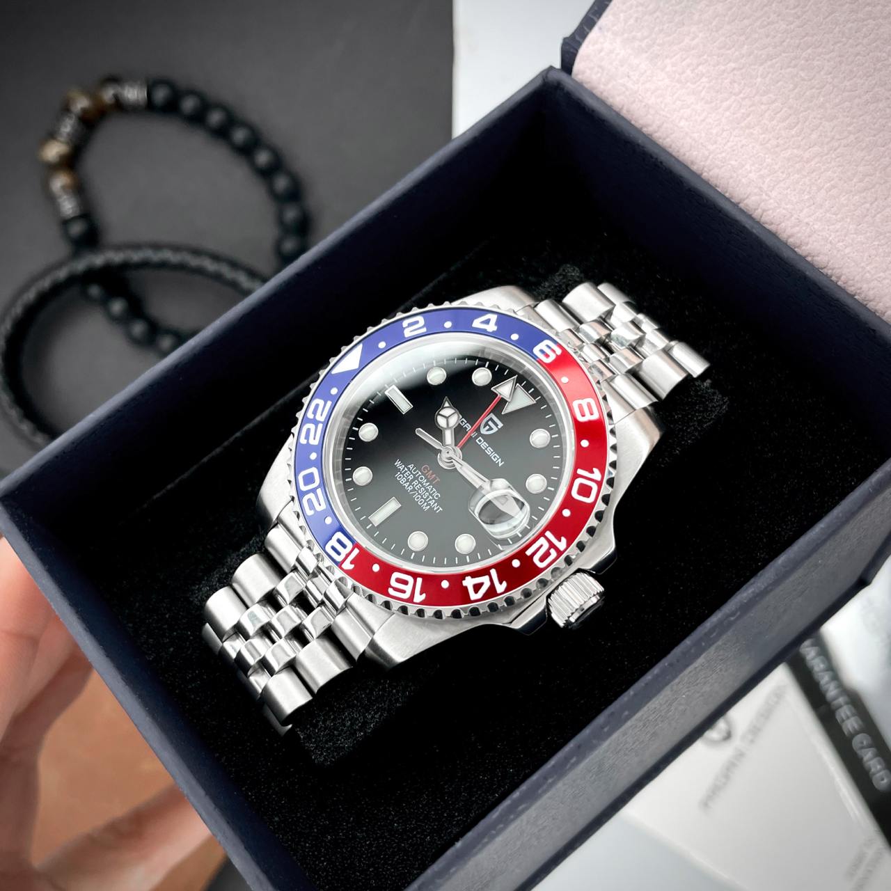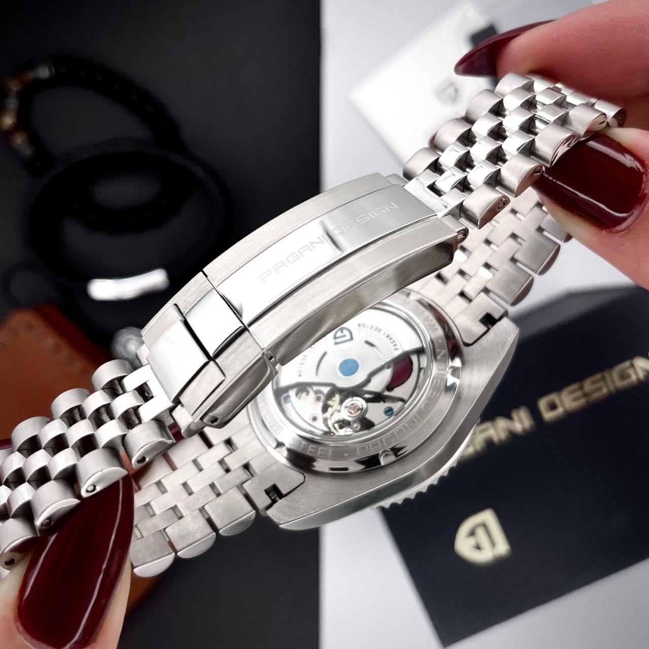 Часы Pagani Design PD-1662 Pepsi – это стильный и функциональный аксессуар, отлично подходящий для мужчин. Он изготовлен из нержавеющей стали, имеет круглую форму корпуса и сапфировое стекло, что обеспечивает его высокую стойкость к повреждениям. Водонепроницаемость до 100 м делает его безупречным для аква видов спорта. Эти часы оборудованы механическим механизмом с автоподзаводом и функцией календаря. Классический циферблат с арабскими цифрами оснащен люминесцентной подсветкой, обеспечивающей читабельность в любых условиях. Длина ремешка составляет 22 см, вес – 156 г. Модель имеет серебристый корпус со стильными синими акцентами. Часы поставляются с гарантией на 12 месяцев и станут удачным дополнением к любому образу, от casual до классического. Произведено в Китае под брендом Pagani Design.