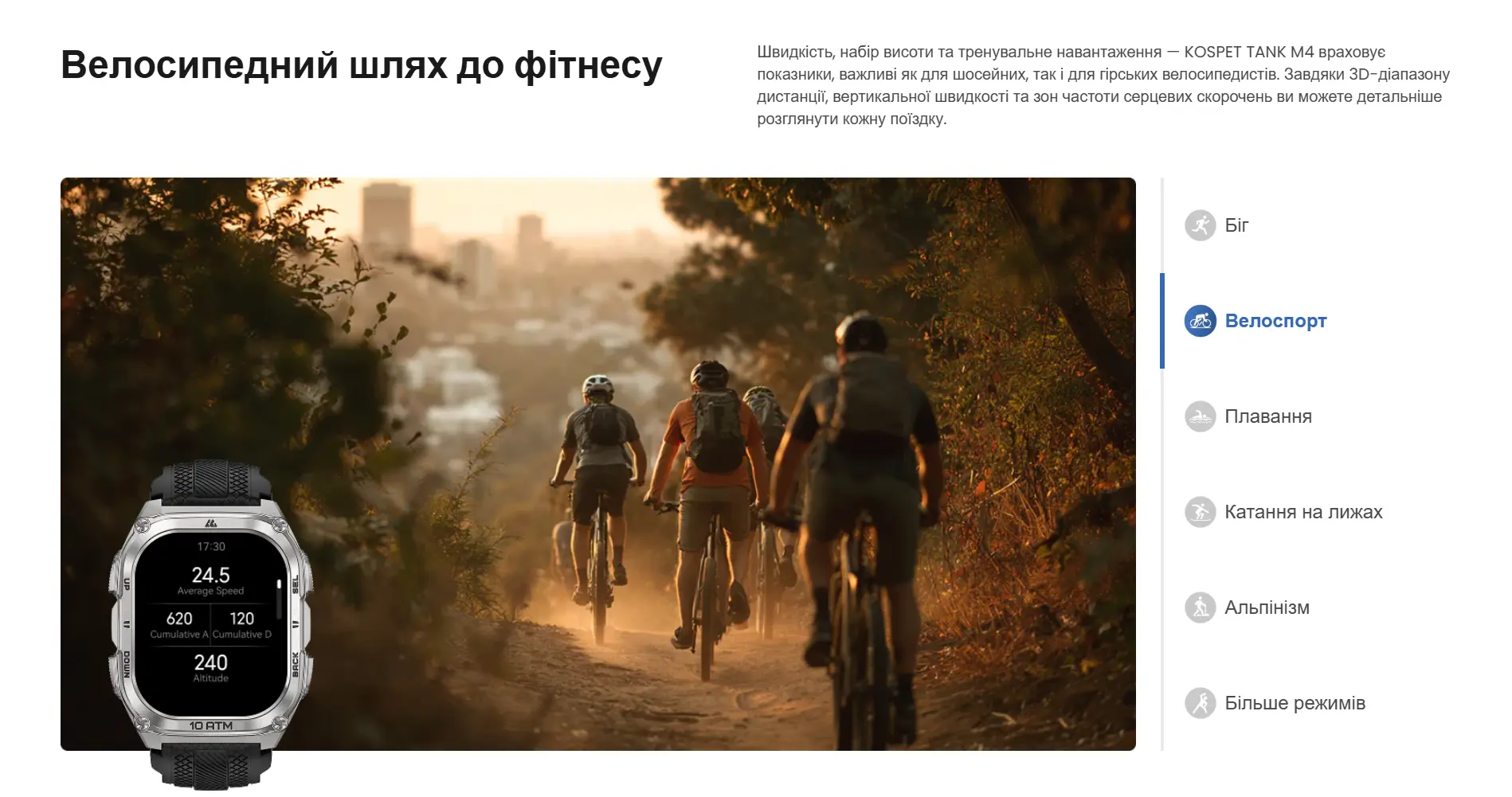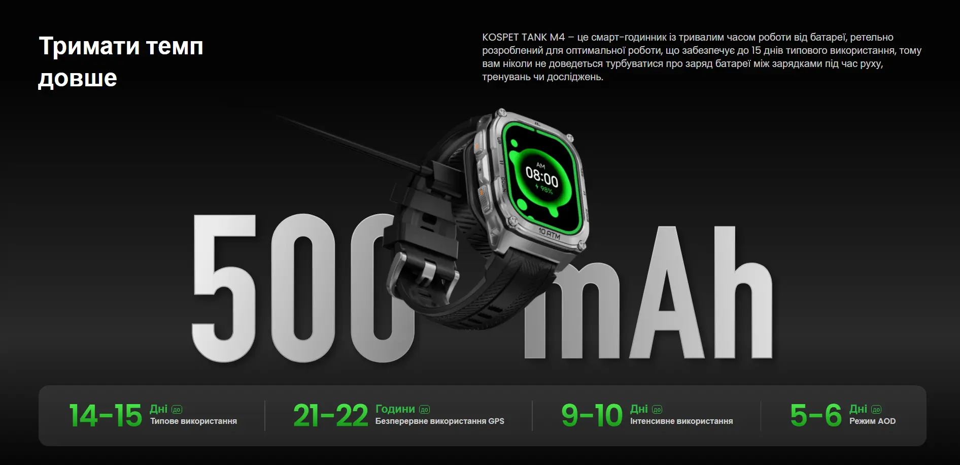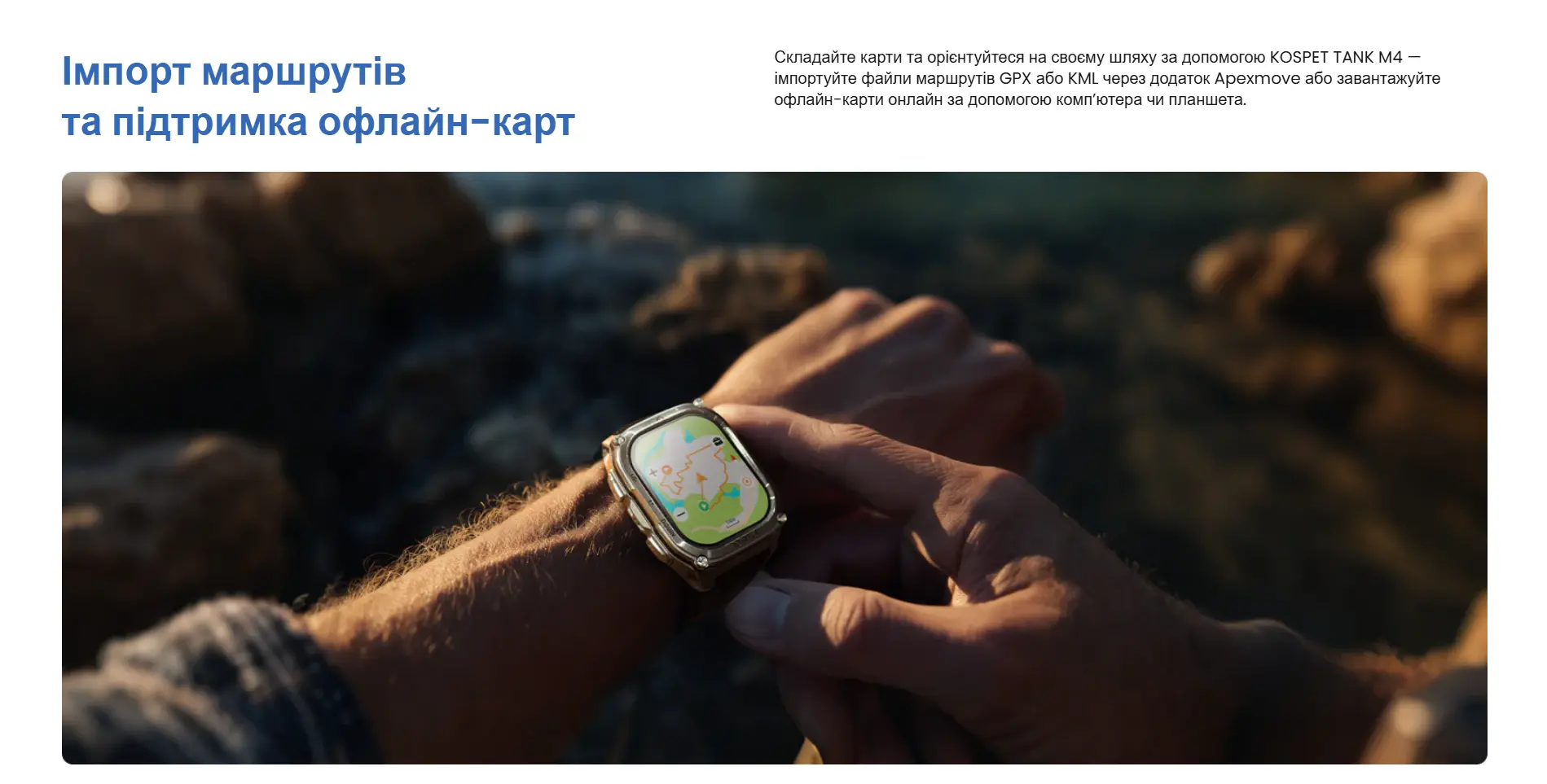 KOSPET TANK M4 – это смарт-часы для тех, кто регулярно преодолевает сложные маршруты, тренируется в тяжелых условиях и нуждается в надежном инструменте с преимуществом в прочности, автономности и навигационной точности.