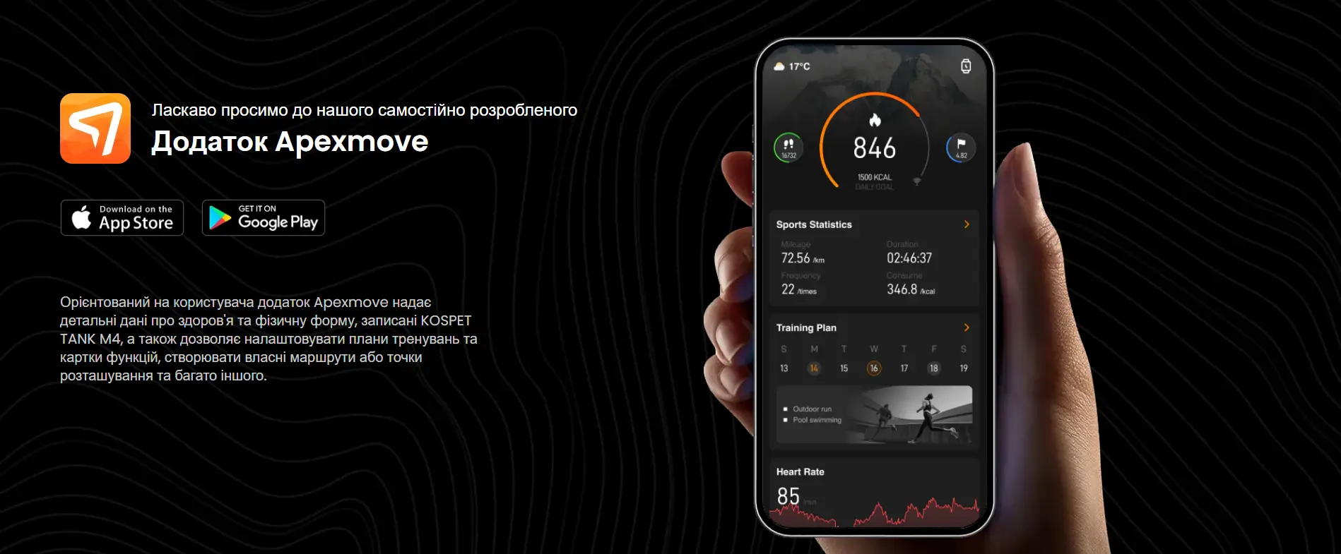 | Дополнение | Apexmove, поддержка синхронизации с Apple Health и Strava |