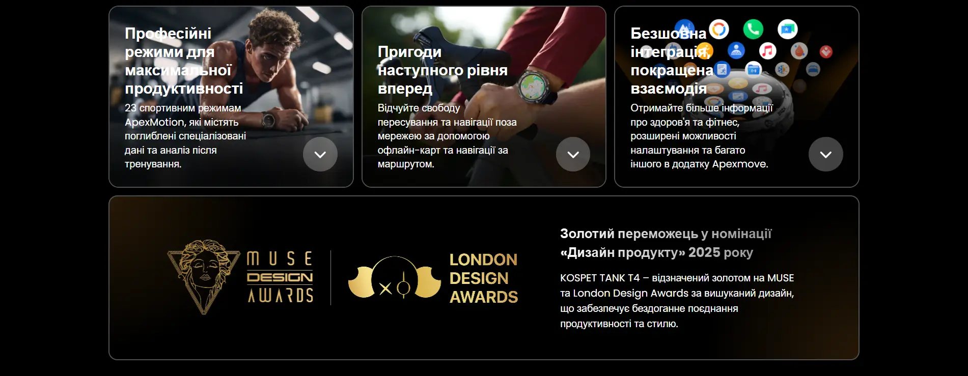 | Дополнение | Apexmove, поддержка синхронизации с Apple Health и Strava |