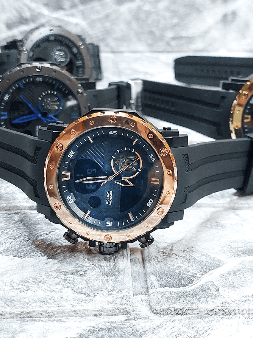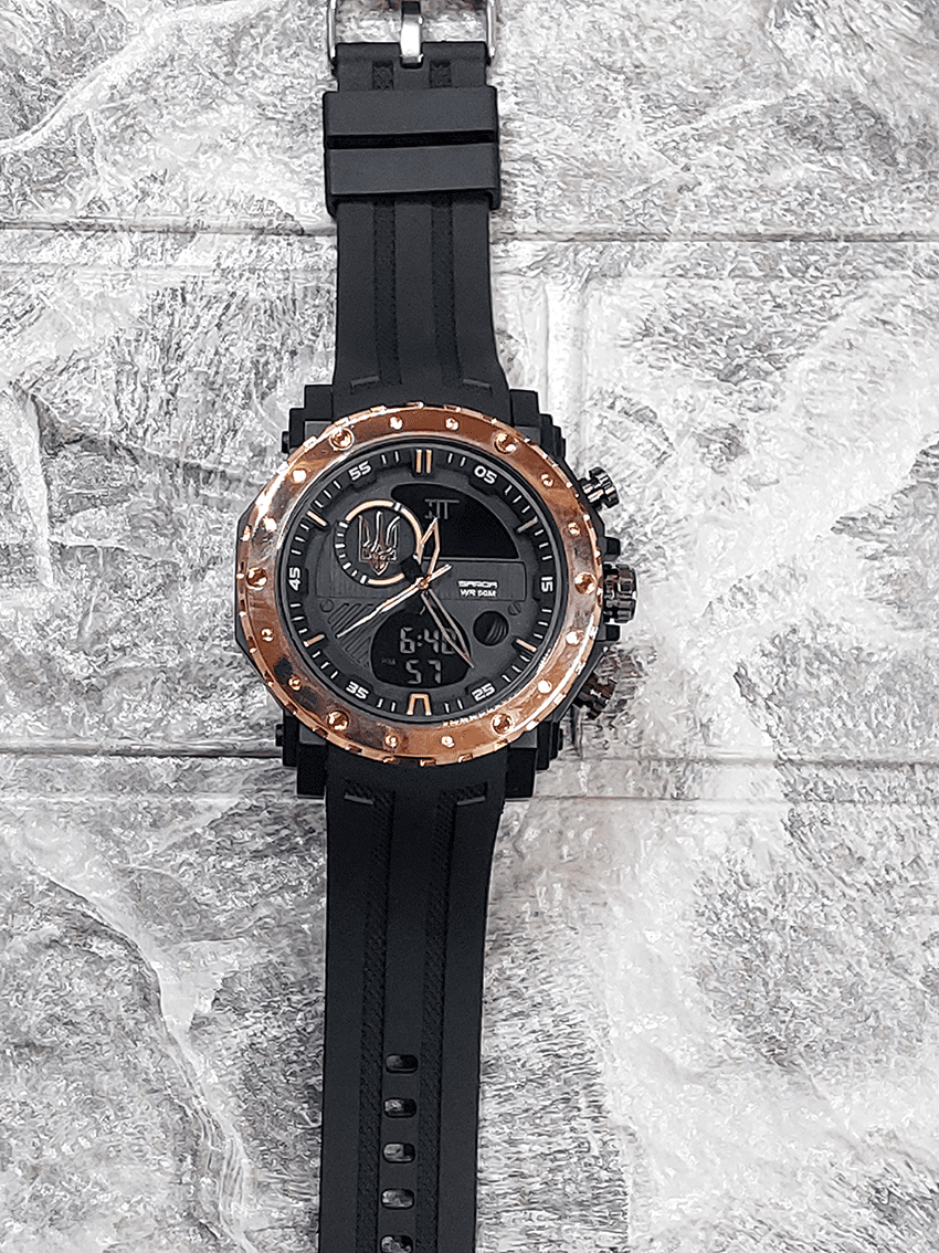 Функциональная модель для мужчин, предпочитающих активный ритм жизни, выполнена с комбинированным типом циферблата. В процессе эксплуатации все элементы: часы, минута, секунда, дата, день недели, месяц, секундомер, таймер, будильник, подсветка работают бесперебойно.