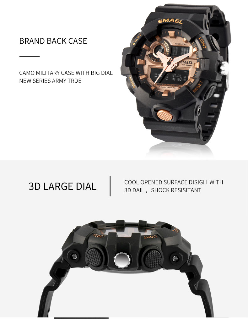 Smael – бренд качественных, спортивных, тактических часов. Часы имеют стильный дизайн, надежный механизм, не боятся воды и при этом имеют демократичную цену и официальную гарантию.