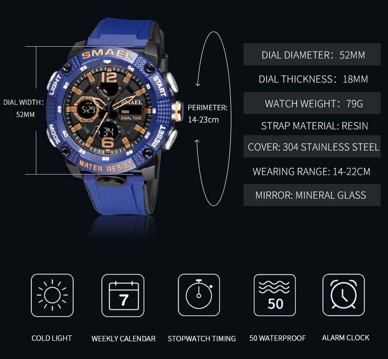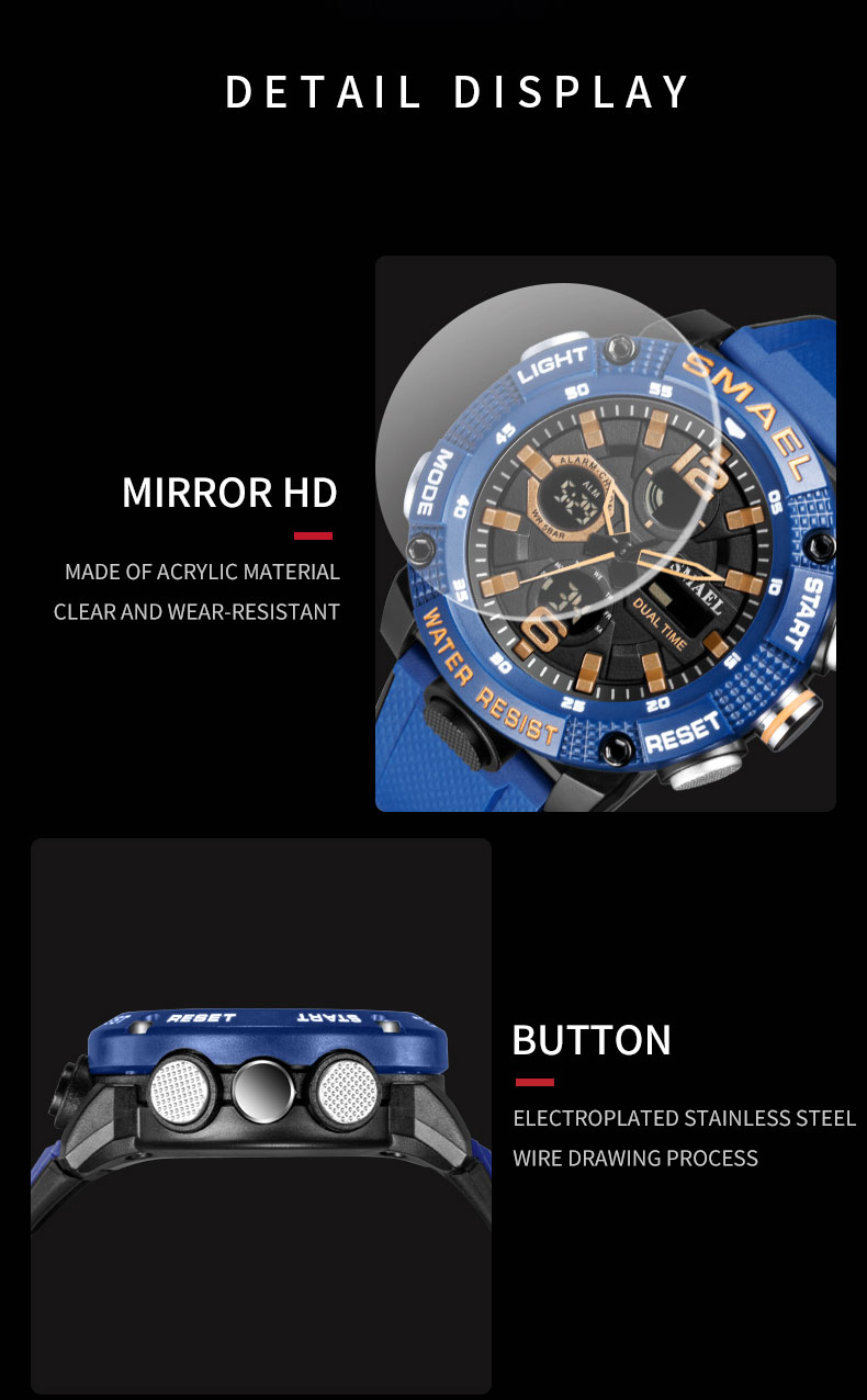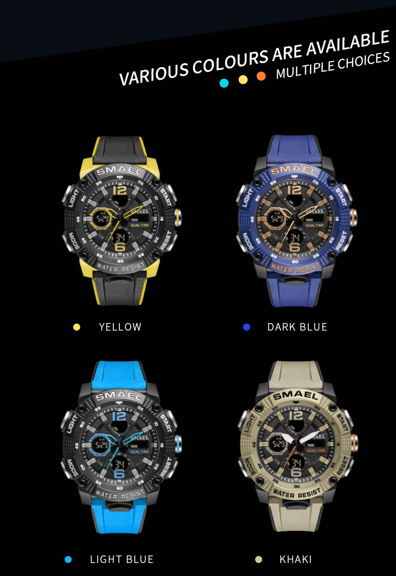 Smael – бренд качественных, спортивных, тактических часов. Часы имеют стильный дизайн, надежный механизм, не боятся воды и при этом имеют демократичную цену и официальную гарантию.