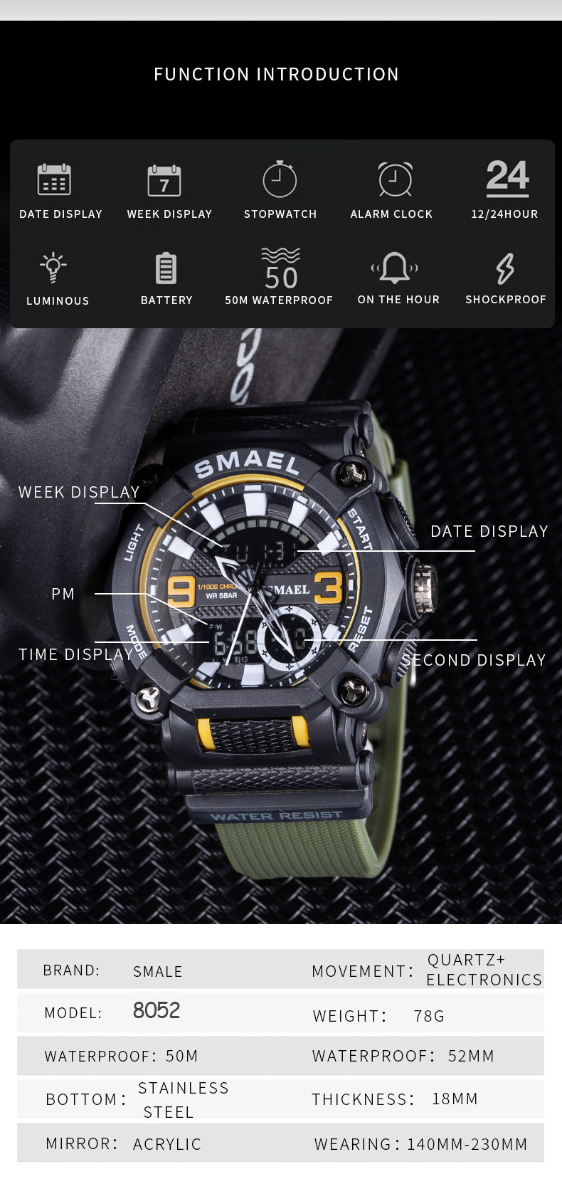 Smael – бренд качественных, спортивных, тактических часов. Часы имеют стильный дизайн, надежный механизм, не боятся воды и при этом имеют демократичную цену и официальную гарантию.