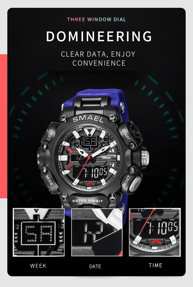 Smael – бренд качественных, спортивных, тактических часов. Часы имеют стильный дизайн, надежный механизм, не боятся воды и при этом имеют демократичную цену и официальную гарантию.