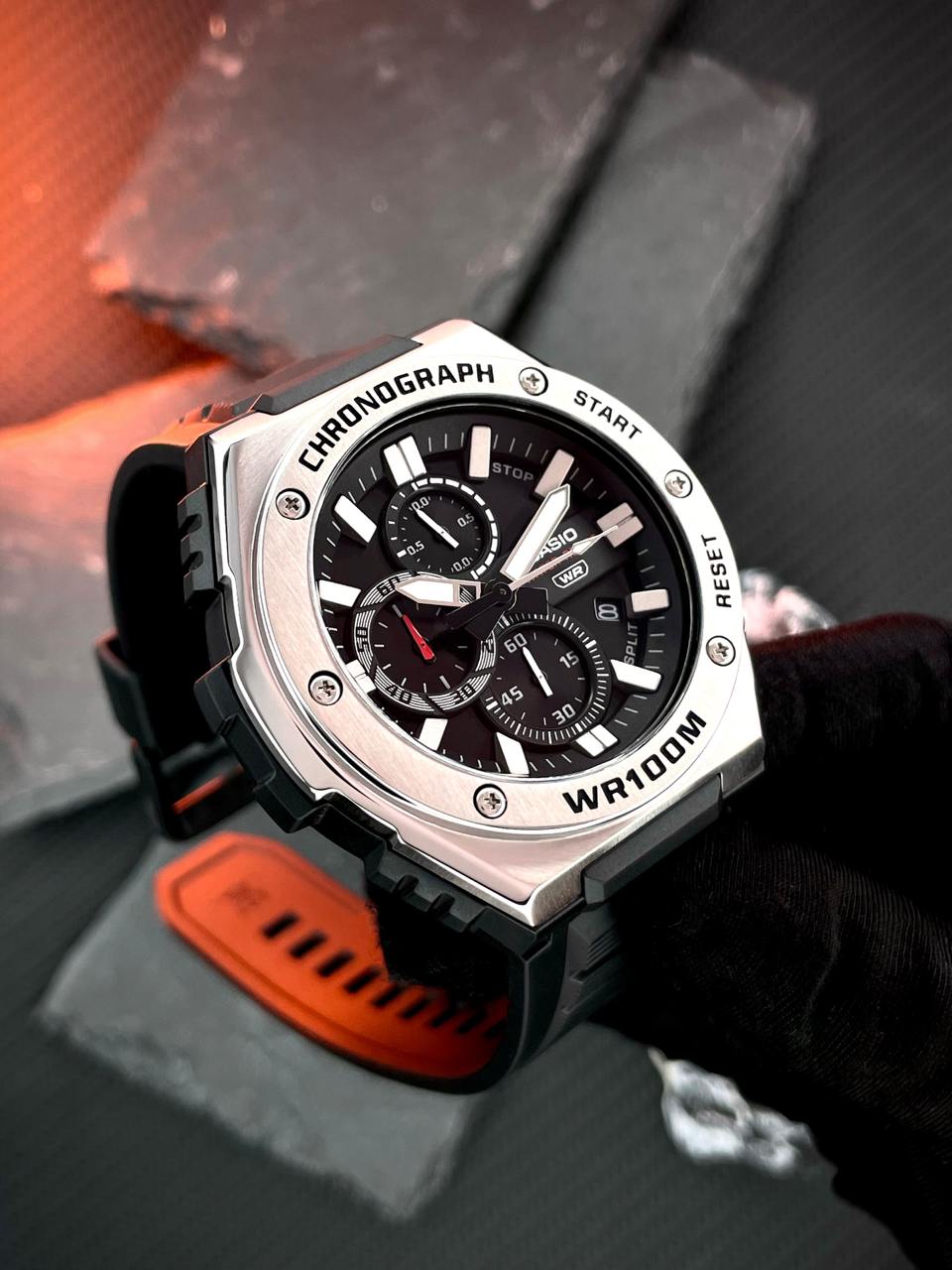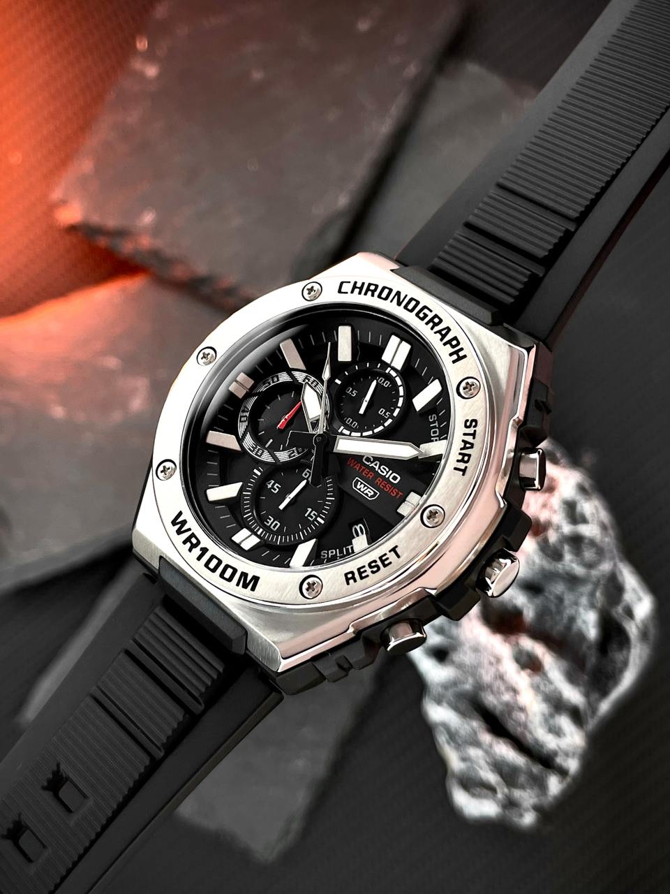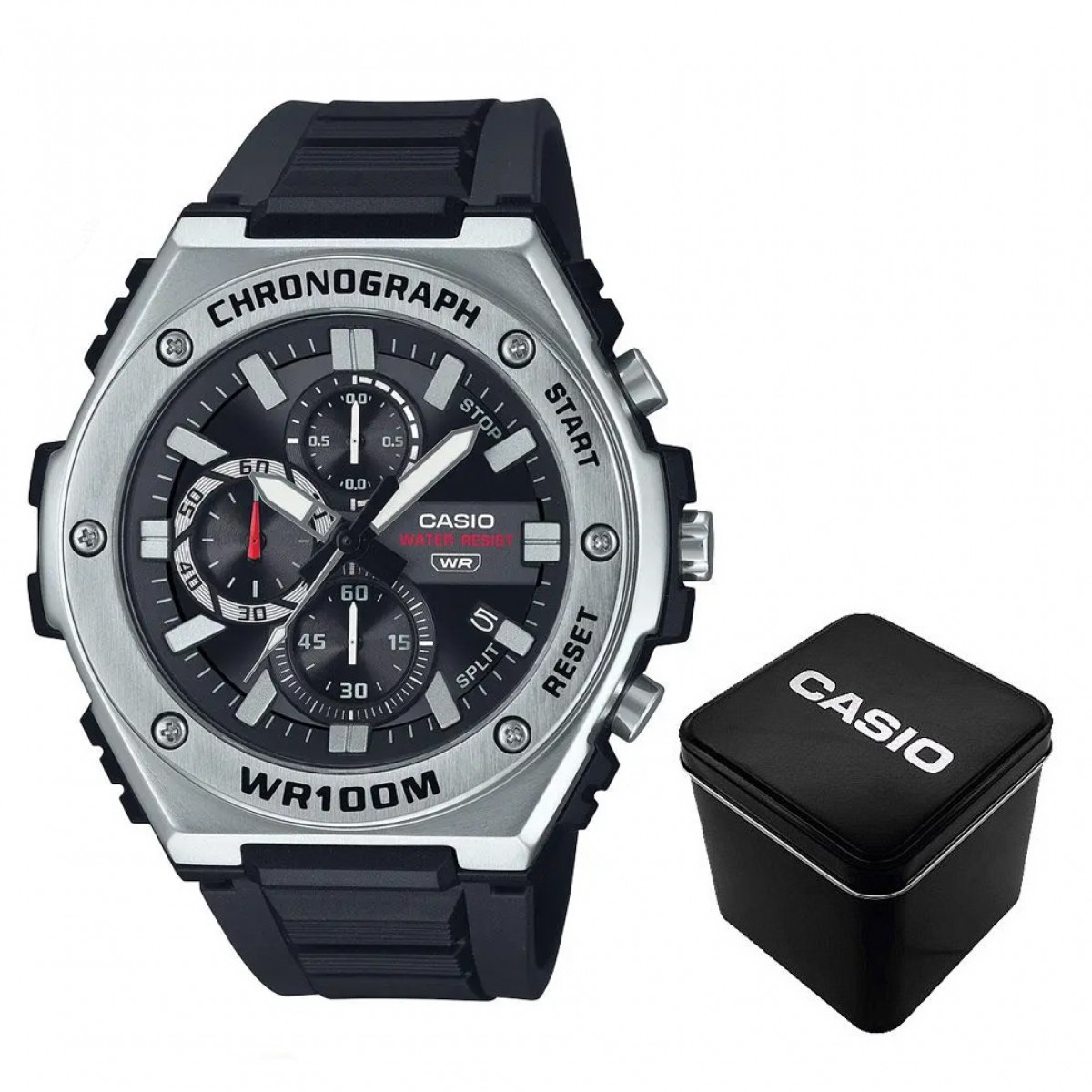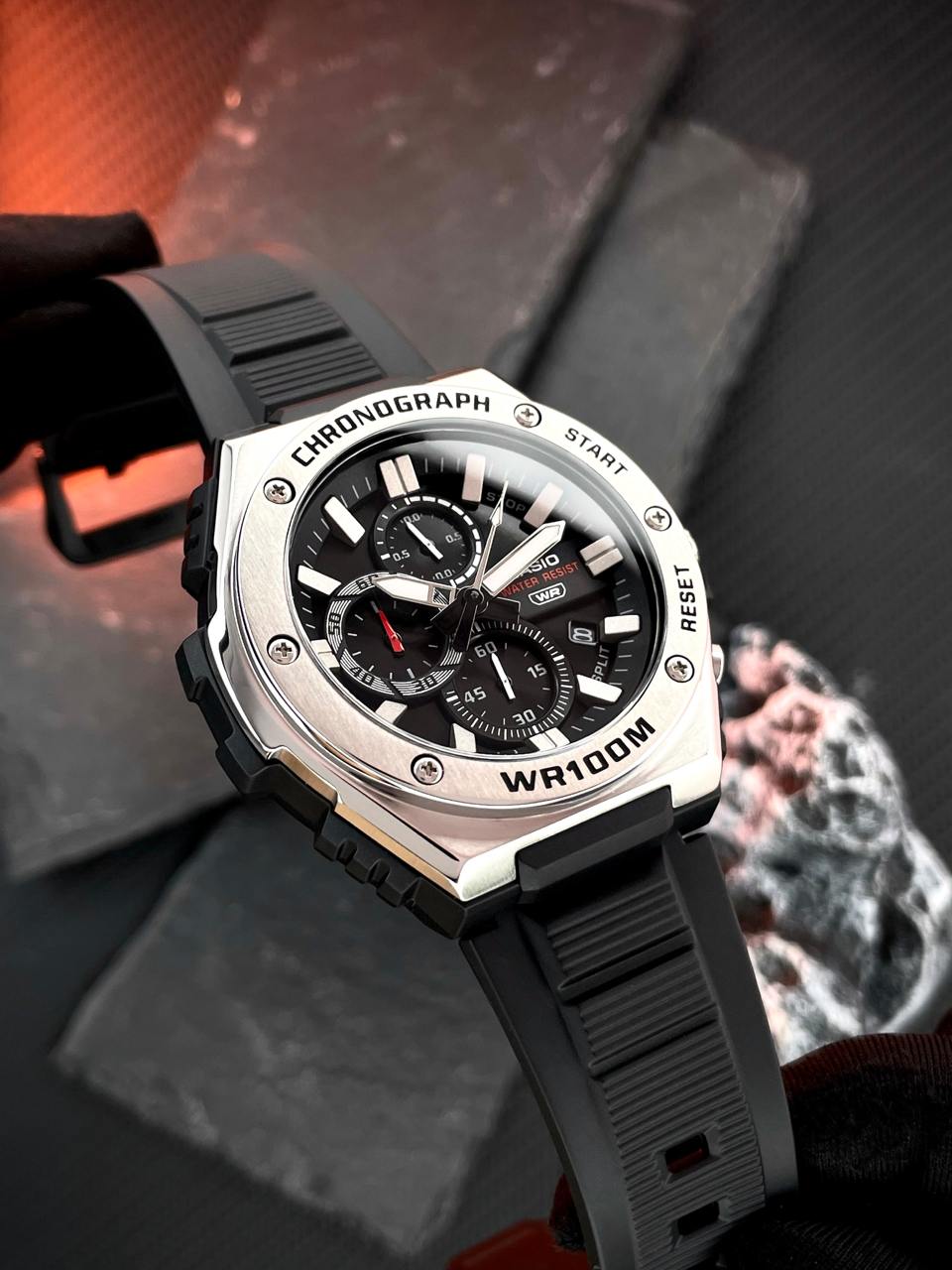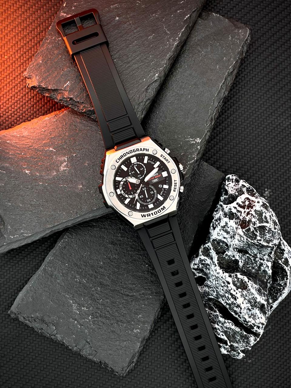 Представляємо абсолютно новий стиль хронографа — аналоговий годинник з декількома циферблатами в сміливому, але спортивному металевому дизайні. Матова і дзеркальна обробка металевого безеля надає цим годинникам яскравий і вишуканий текстурний вигляд, а такі елементи в стилі кежуал-спорт, як рельєфні індекси, втоплені циферблати і витончений циферблат з ефектом сонячних променів, доповнюють образ. Функціональність не поступається дизайну: водонепроникність до 100 метрів, секундомір та інші функції забезпечать вам все необхідне в найактивніші дні.