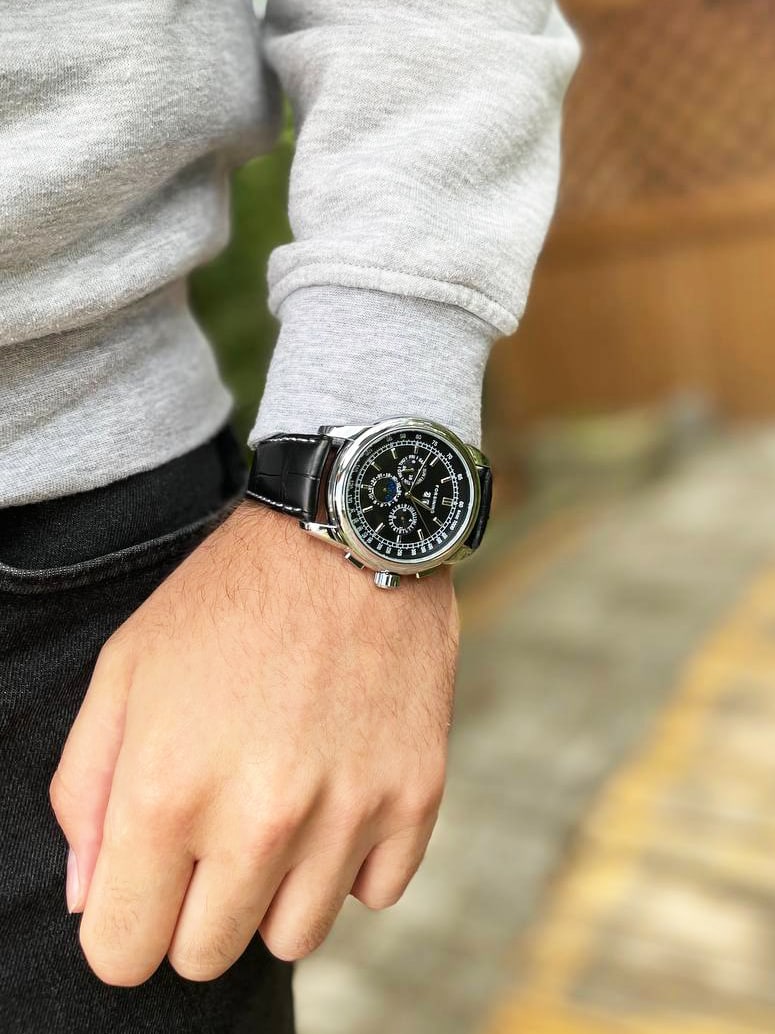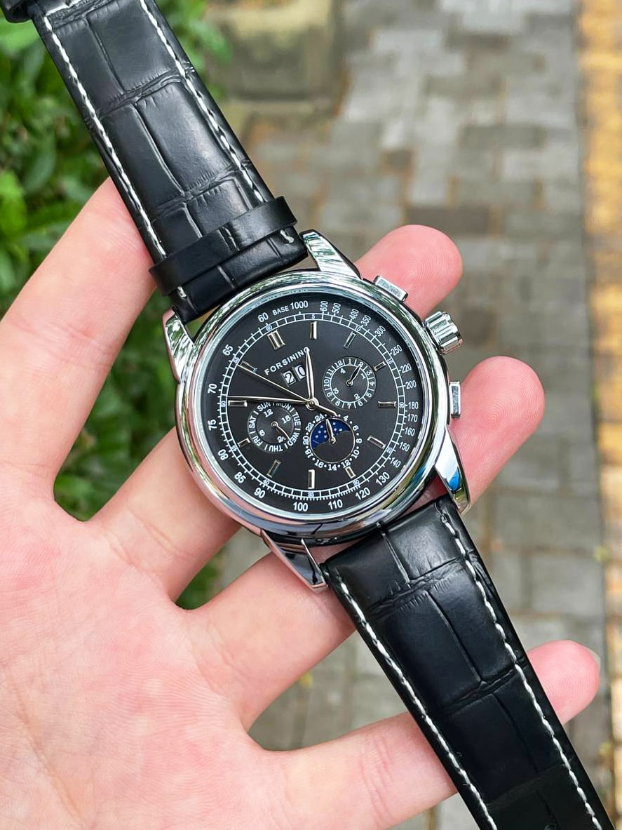 Чоловіча модель 319 у механіці з автопідзаводом від Forsining. Виконані з функціоналом: годинник, хвилина, секунда, дата, день тижня, фаза місяця. Оснащені на циферблаті мінеральним склом, яке: