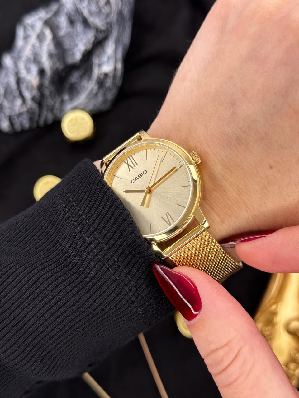 Представляємо жіночий годинник Casio LTP-E157MG-9A — елегантний аксесуар, який підкреслить вашу індивідуальність. Цей класичний кварцевий годинник з круглим корпусом, виготовленим з нержавіючої сталі, має золотистий колір, що додає йому розкішного вигляду. Діаметр корпусу складає 31 мм, а довжина ремінця — 19 см, що забезпечує комфортне і стильне носіння. Годинник має водонепроникність до 30 метрів, тому ви можете не турбуватися про його захист у повсякденному житті. Мінеральне скло стійке до подряпин, а механізм індикує години, хвилини та секунди, що дозволяє завжди залишатися на часі. Casio LTP-E157MG-9A також має римські цифри на циферблаті, що надає йому витонченого шарму. Стильний дизайн та висока якість виконання роблять цей годинник ідеальним вибором для сучасної жінки. Не пропустіть можливість доповнити свій образ цим чудовим аксесуаром від бренду Casio, який славиться своєю надійністю та елегантністю. Гарантія на годинник становить 24 місяці.