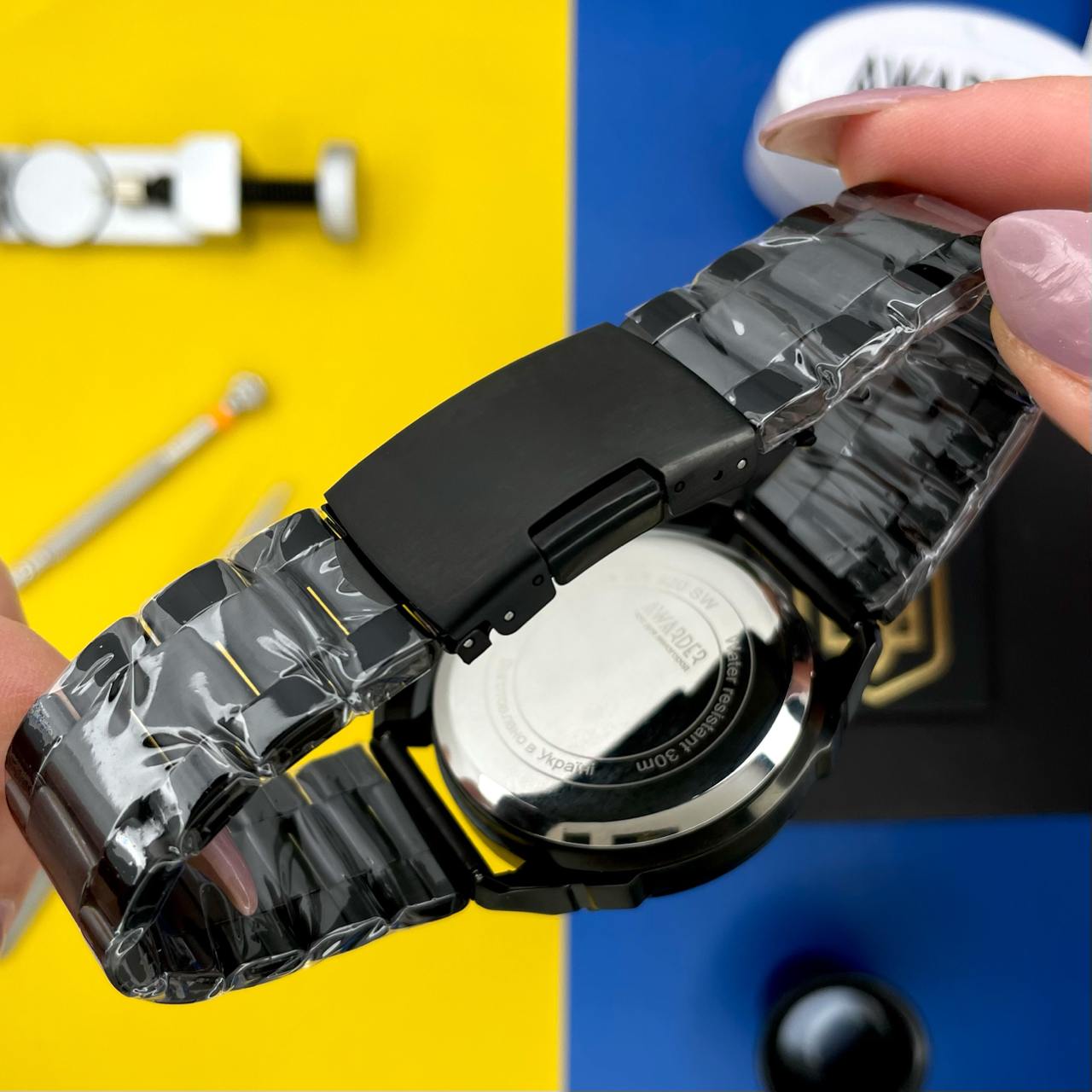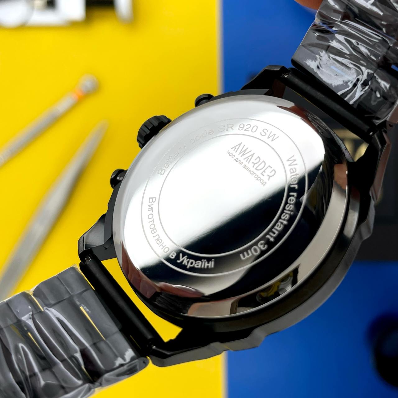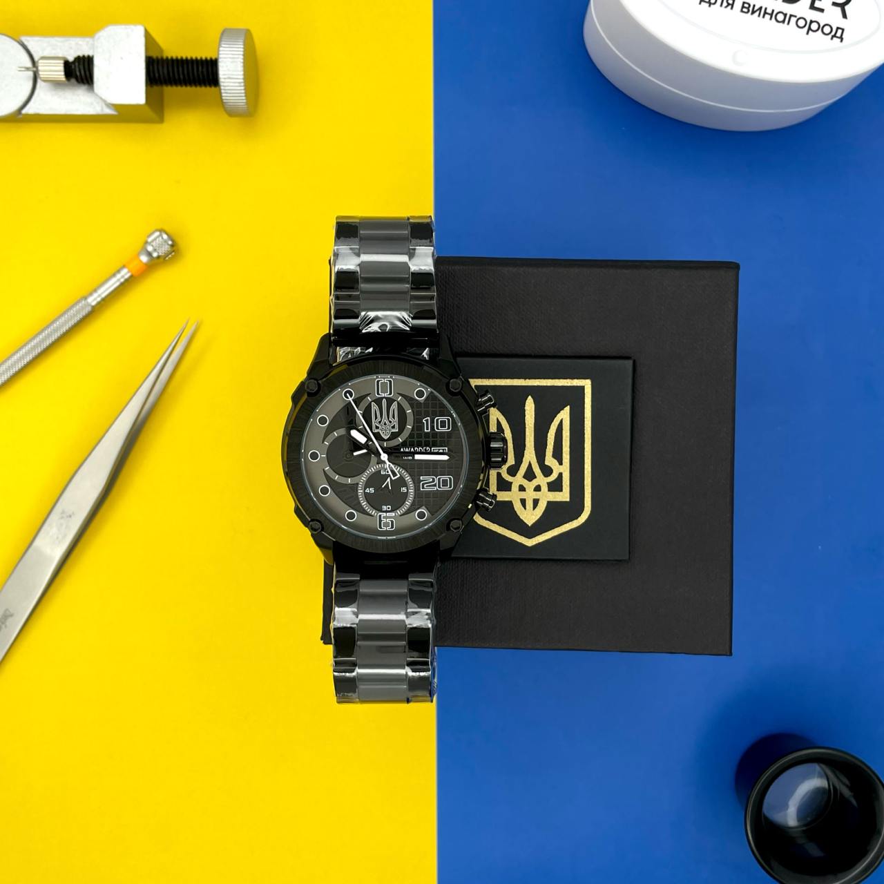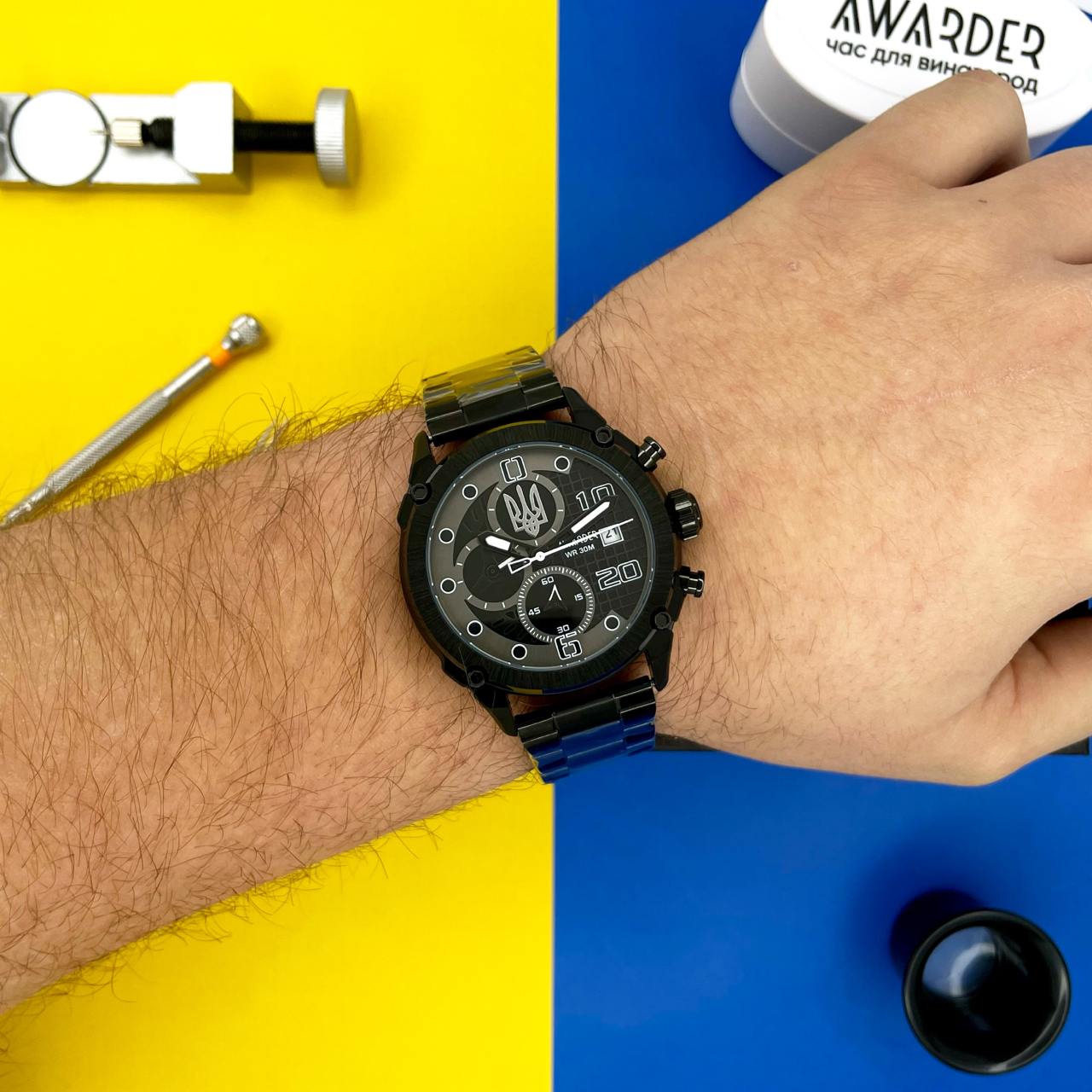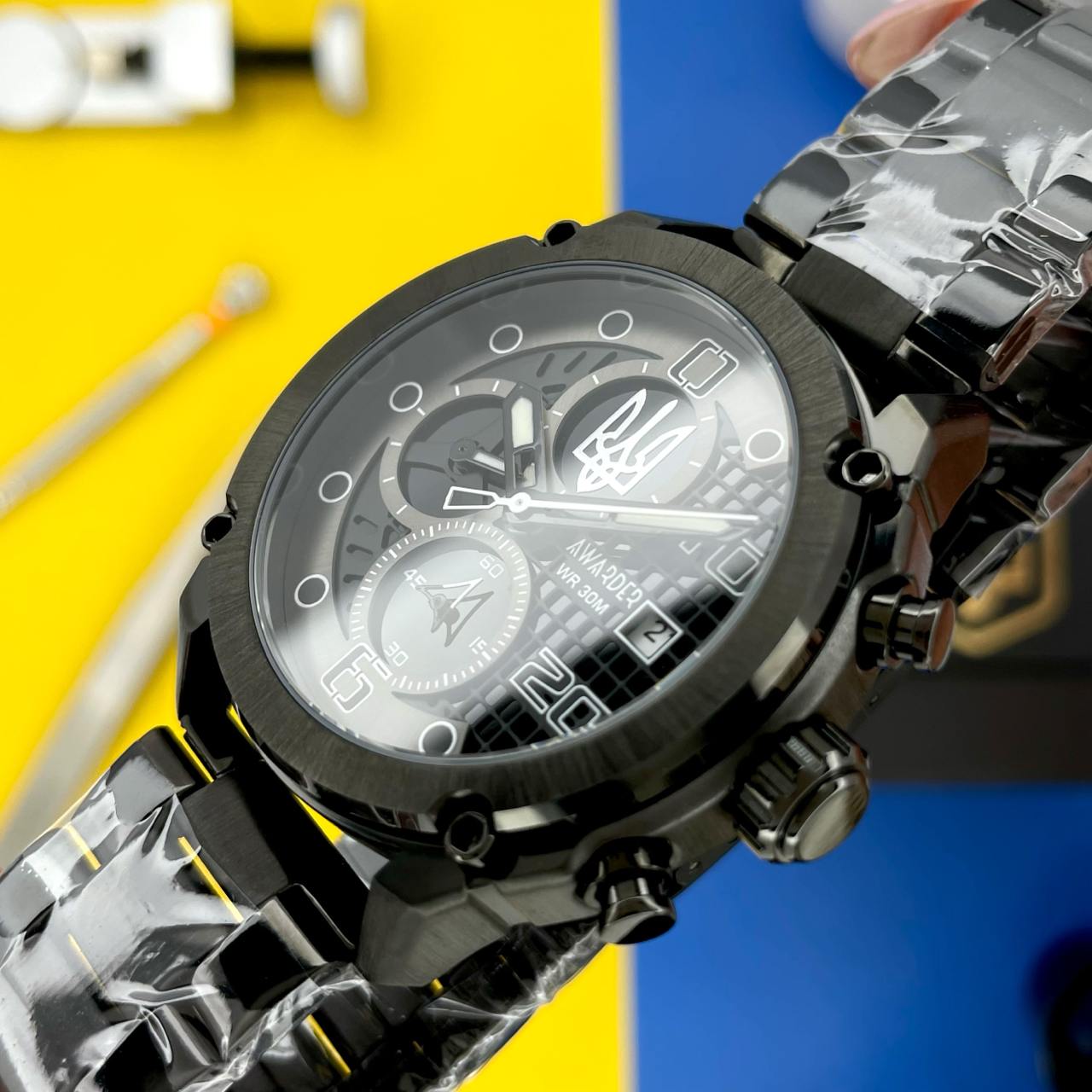 Awarder 016 це стильний кварцовий годинник поєднує у собі сучасний дизайн, функціональність і патріотичну символіку.