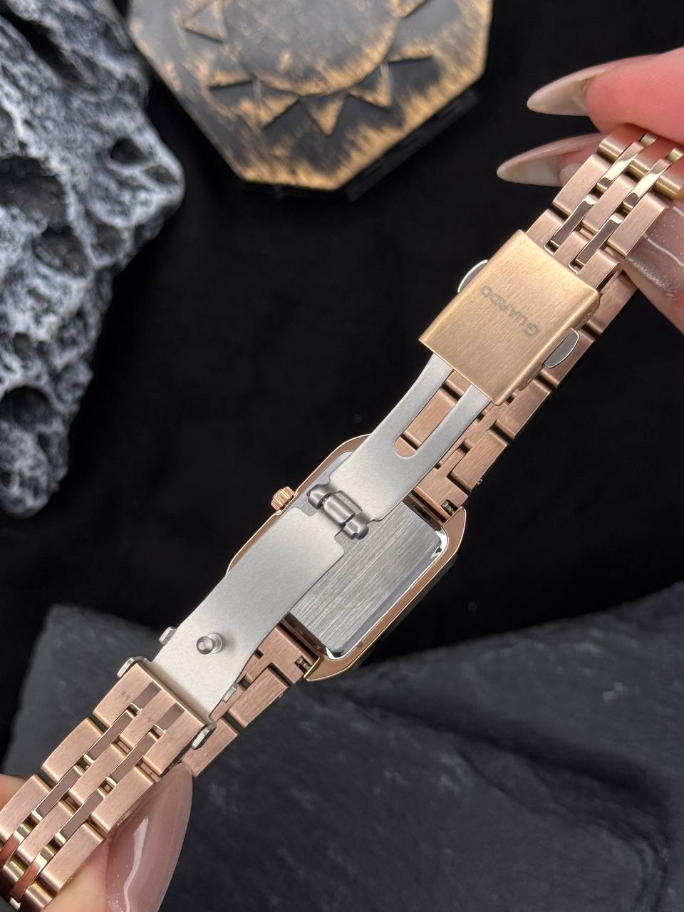 Годинник Guardo 012800-4 – це елегантний жіночий аксесуар, який поєднує в собі стиль та функціональність. Корпус годинника виготовлений з високоякісної нержавіючої сталі та має привабливий рожевий відтінок, що надає модний акцент. Діаметр корпусу складає 32 мм, а товщина – 8 мм, що робить його ідеальним для щоденного носіння.