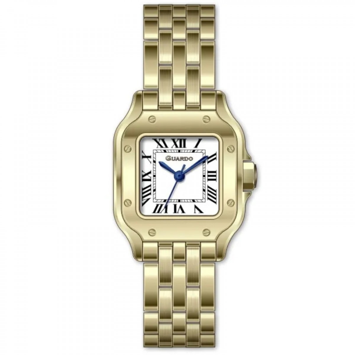 Годинник GUARDO 012827-2 – це вишуканий аксесуар для стильних жінок, які цінують класичний дизайн та практичність. Виготовлений із нержавіючої сталі, цей годинник має елегантний золотистий корпус і браслет, що надає йому розкішного вигляду. Квадратна форма корпусу та римські цифри на циферблаті підкреслюють класичний стиль, роблячи його ідеальним вибором для будь-якого урочистого заходу або повсякденного використання.
