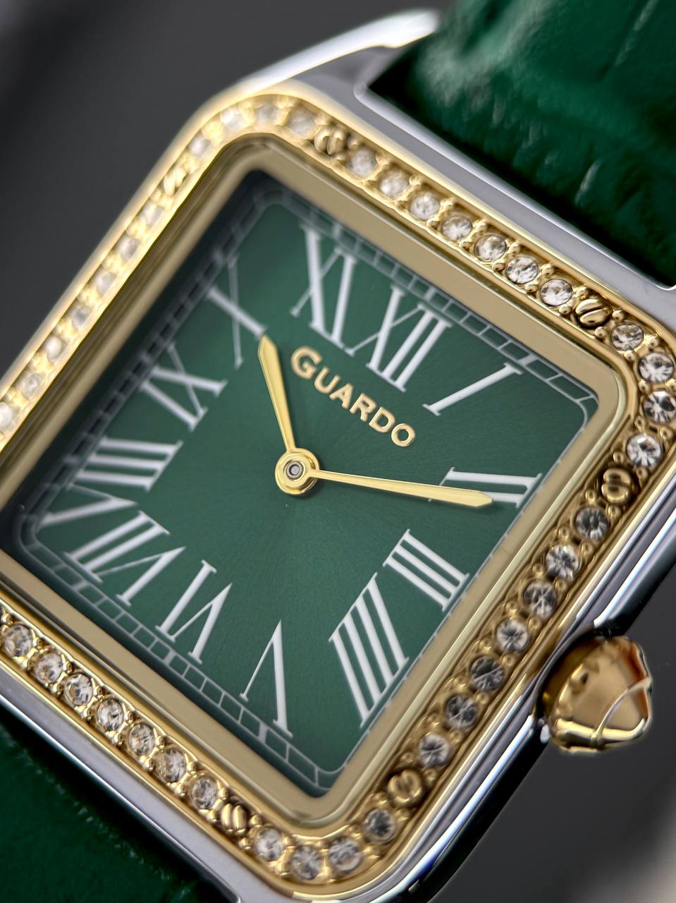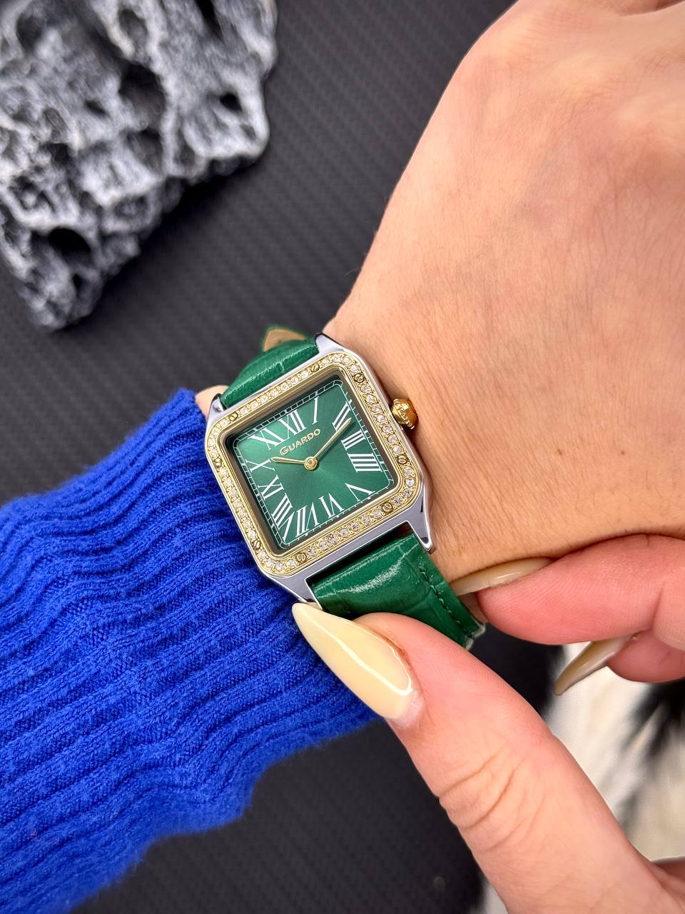 Представляємо вам стильний жіночий годинник GUARDO 012832-7, який поєднує в собі елегантність та функціональність. Цей годинник виготовлений з якісних матеріалів, зокрема нержавіючої сталі, що забезпечує йому довговічність. Комбінація зеленого шкіряного ремінця та сріблястого квадратного корпусу надає йому вишуканого вигляду, який підкреслить ваш стиль.