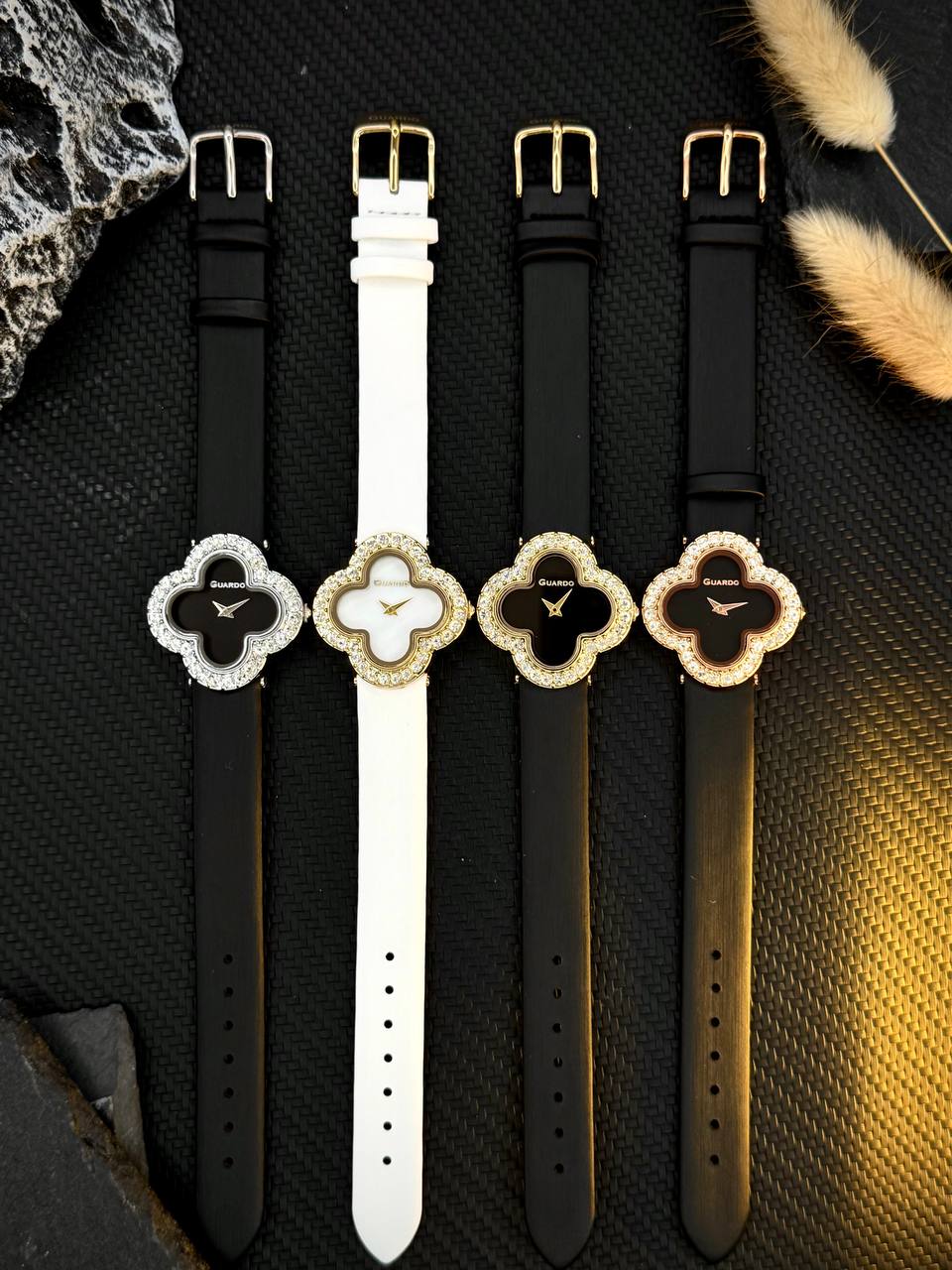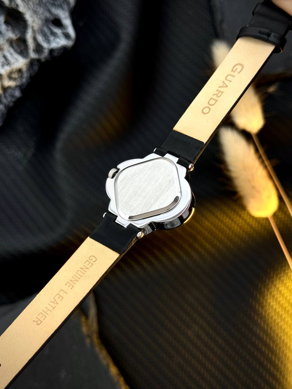 Мінеральне скло забезпечує стійкість до подряпин, а нестандартна форма корпусу підкреслює індивідуальність власниці. З гарантією 12 місяців від бренду Guardo, цей годинник стане надійним супутником на кожен день.
