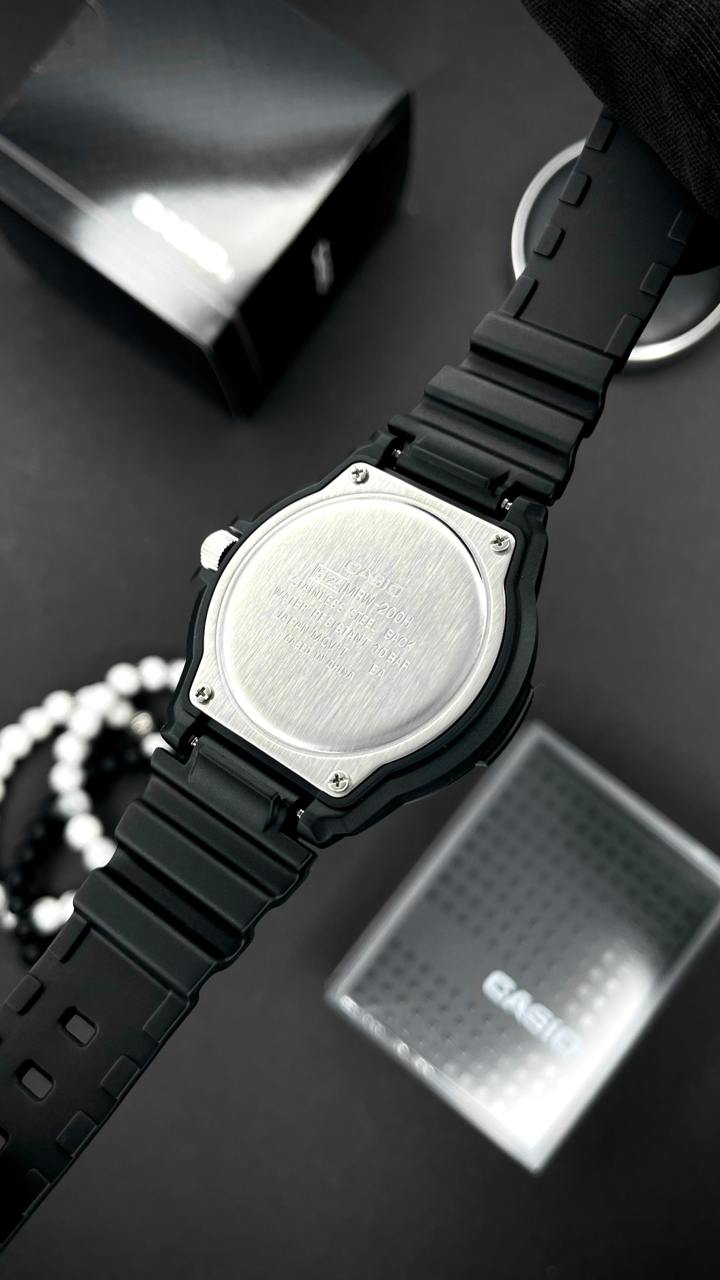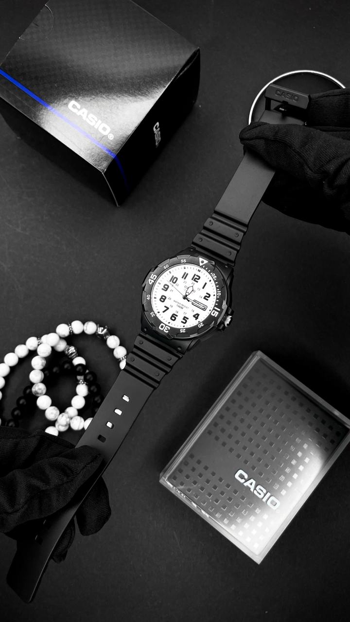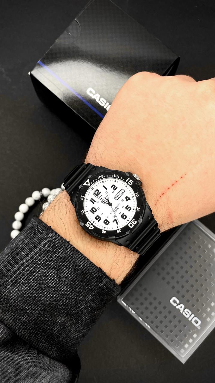 Представляємо вам чоловічі спортивні годинники Casio MRW-200H-7B, які ідеально поєднують функціональність та стиль. Виготовлені в Японії, ці годинники обладнані надійним кварцовим механізмом і мають водонепроникність до 100 м, що робить їх відмінним вибором для любителів водних видів спорту. Корпус годинника виконано з легкого та міцного пластику, а чорний каучуковий ремінець забезпечує комфортне носіння. Завдяки мінеральному склу, ви можете бути впевнені в його стійкості до подряпин. Кругла форма корпусу з діаметром 39 мм та стилем циферблата з арабськими цифрами і індексами забезпечує легку читабельність. Годинники оснащені люмінесцентною підсвіткою, що дозволяє зручно зчитувати час у темряві. Загальна вага моделі складає всього 45 г, а довжина ремінця — 26 мм, що робить їх легкими та зручними у повсякденному використанні. Кожен покупець отримує гарантію на 24 місяці. Casio MRW-200H-7B — це надійний вибір для активних чоловіків!