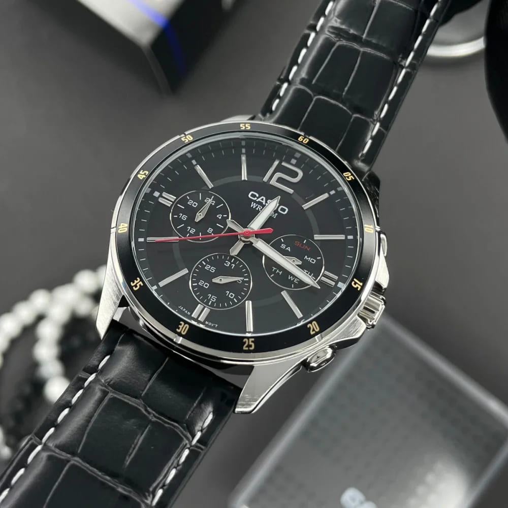Представляємо чоловічий годинник Casio MTP-1374L-1A — поєднання класики та сучасного дизайну. Корпус з нержавіючої сталі сріблястого кольору має елегантну круглу форму і забезпечує надійний захист механізму. Стильний шкіряний ремінець коричневого кольору додає вишуканості, а мінеральне скло забезпечує стійкість до подряпин. Цей кварцовий годинник відомого японського бренду Casio має водонепроникність до 30 м, що робить його ідеальним вибором для повсякденного використання. Циферблат з арабськими цифрами та індексами оснащений люмінесцентним підсвічуванням, що дозволяє легко зчитувати час у темряві. З діаметром корпусу 43 мм і вагою всього 66 г, годинник комфортно сидить на руці. Обирайте Casio MTP-1374L-1A — стильний аксесуар, який підкреслить ваш смак і статус. Гарантія на годинник становить 24 місяці, що підтверджує його якість та надійність.