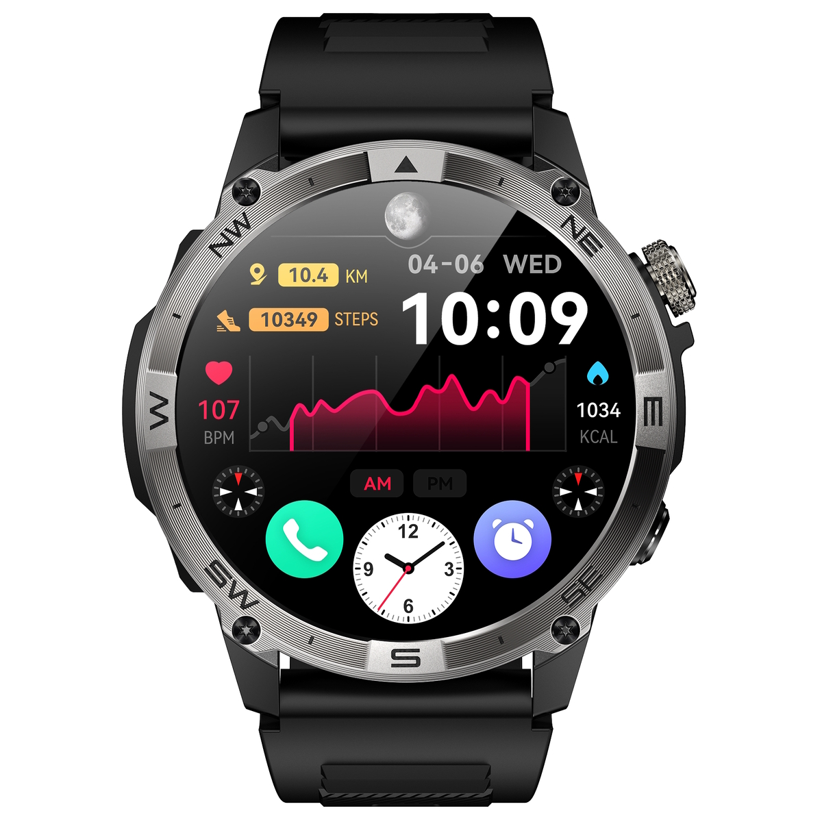 | Основні функції | GPS-відстеження координат; Компас; Режим екстремальних температур; Режим бігу/тренажерного залу; Розширений фітнес – трекер; Функція "Розумний сон +"; Потужна батарея (до 40+ днів у режимі спокою); 60+ режимів спортивних ігор; Дистанційне керування камерою; Будильник; Секундомір; Барометр; Альтиметр; Керування програвачем телефону. |